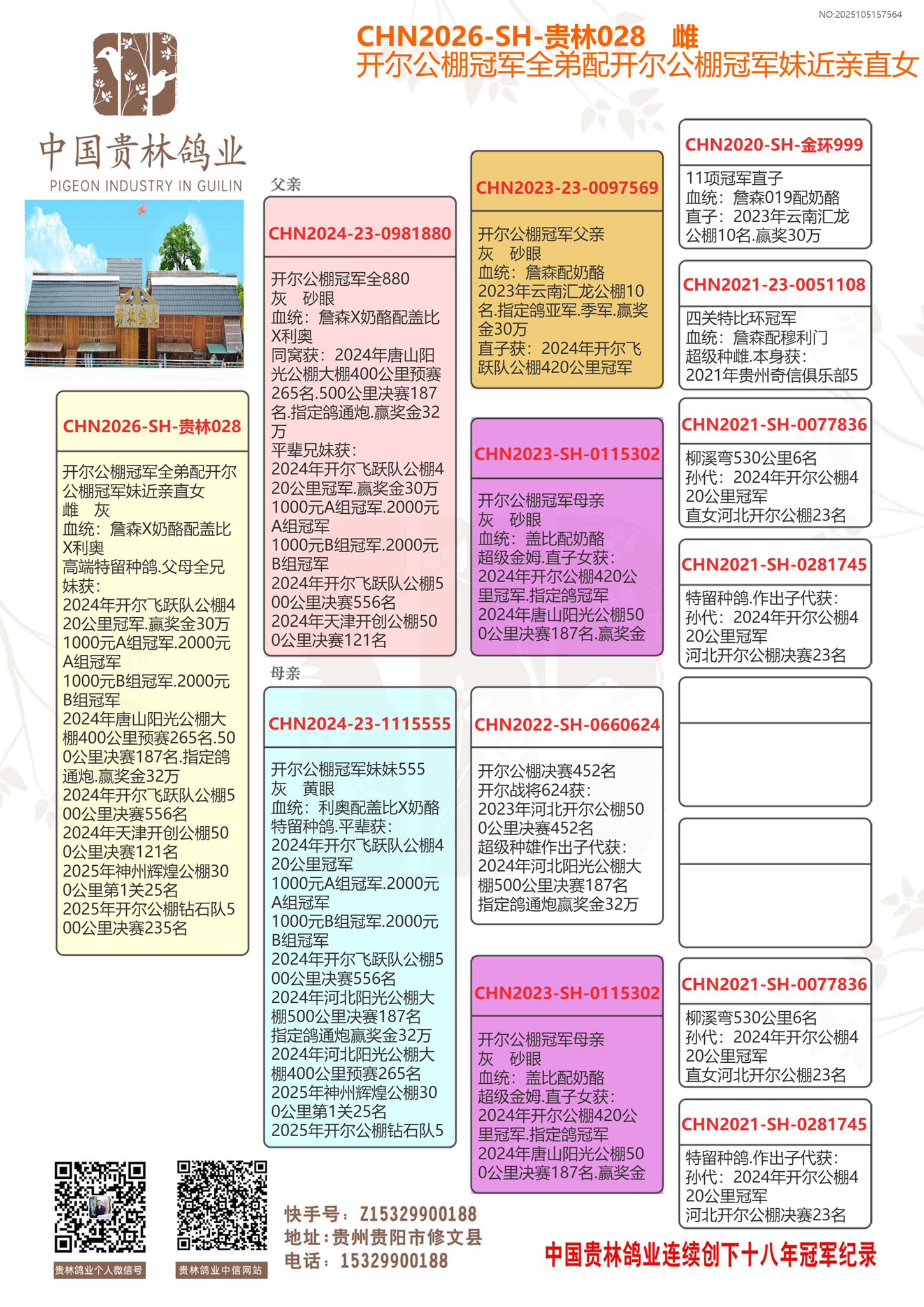 ★贵林鸽业2006年至2024年连续创下十八年冠军记录!200公里冠军.300公里冠军.400公里冠军.500公里冠军.公棚冠军.特比环冠军.三关鸽王冠军.四关鸽王冠军.大小冠军无一缺席!