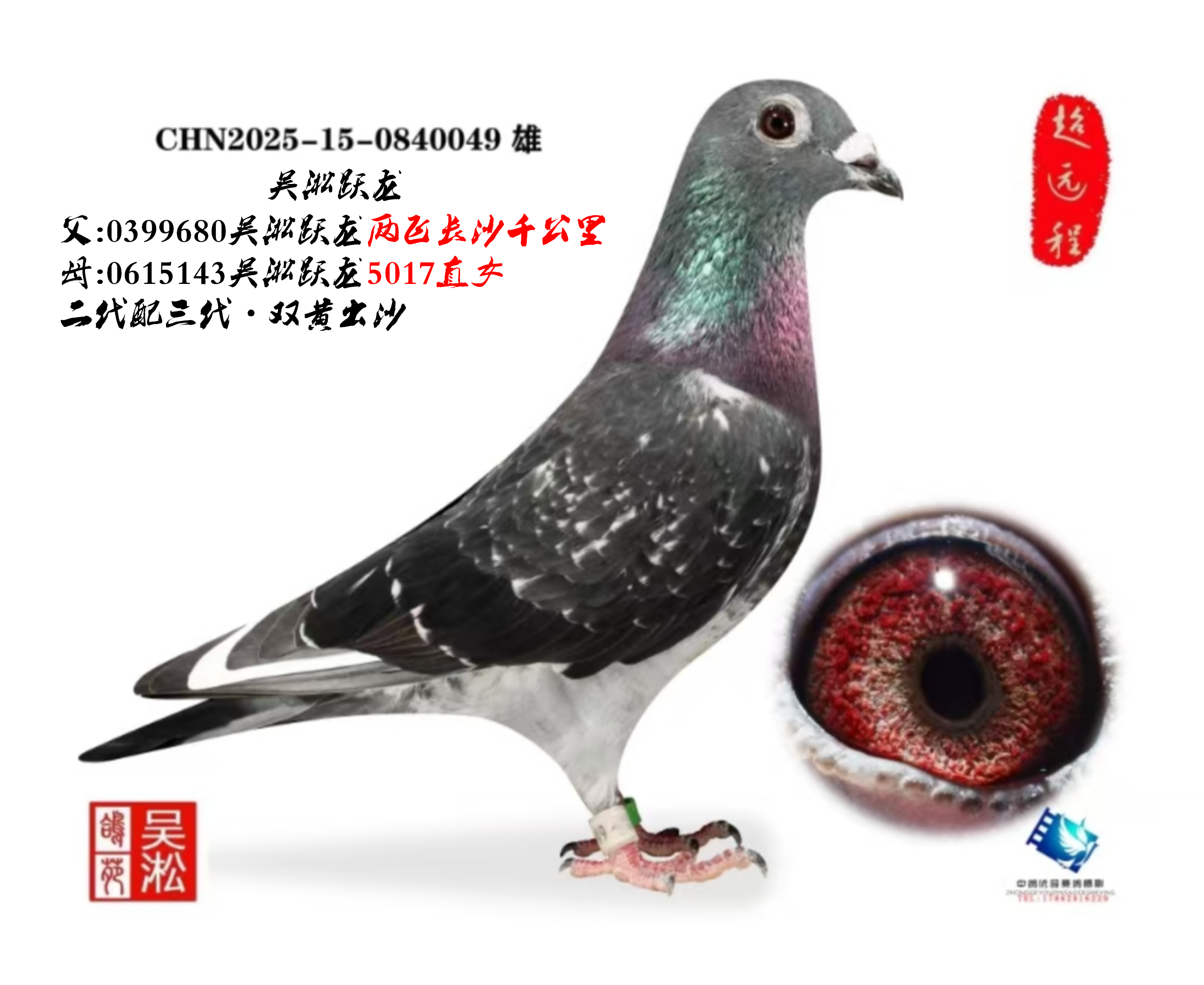 | 1644979 | 吴淞跃龙系代表种鸽18岁老雄直子 | ¥80000元 | 0次 |