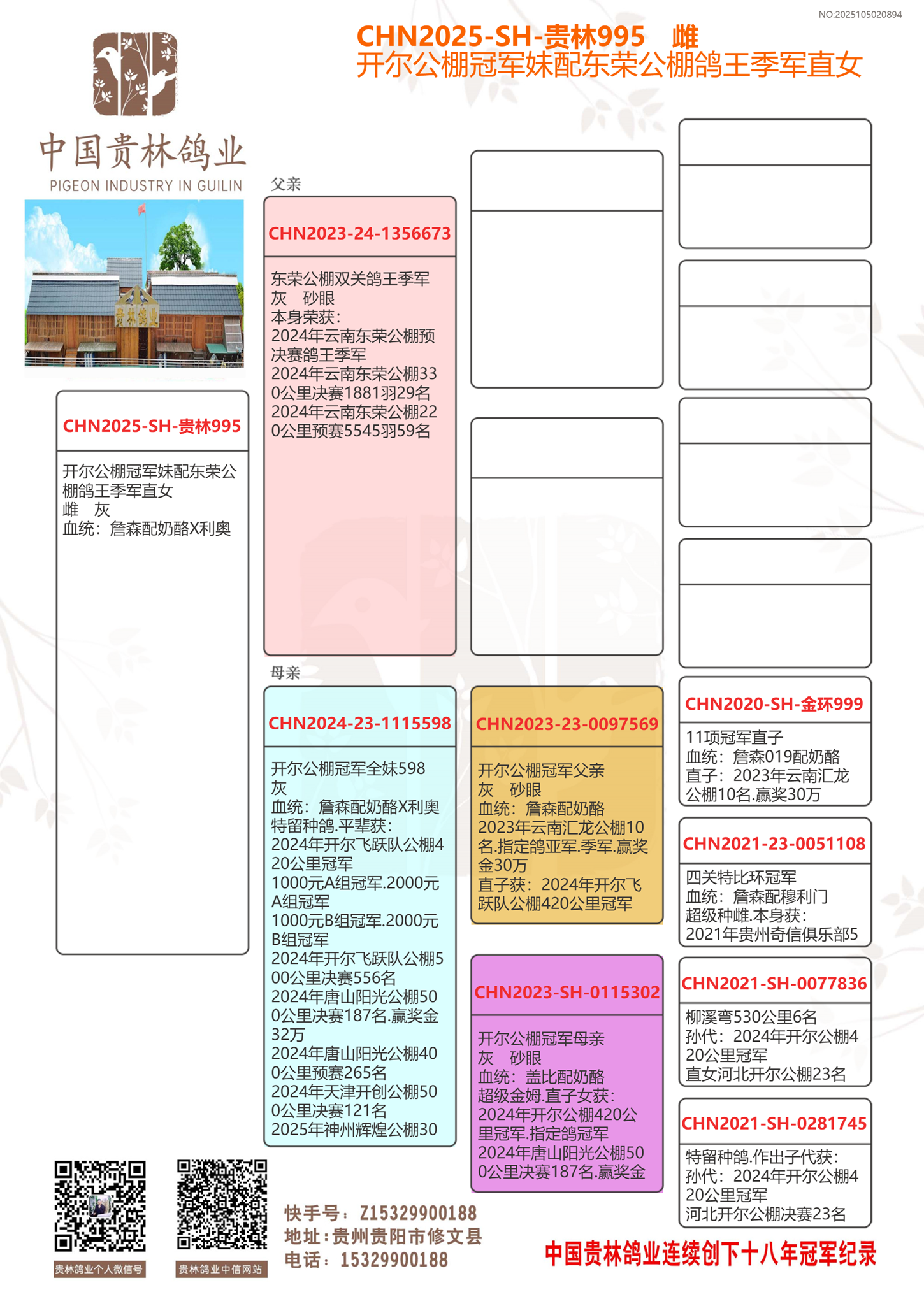 ★贵林鸽业支援全国鸽友从2010年至2025年连续十五年用贵林鸽业种鸽作出冠军,亚军,季军前十名高位好成绩.感谢大家鸽友一直支持。