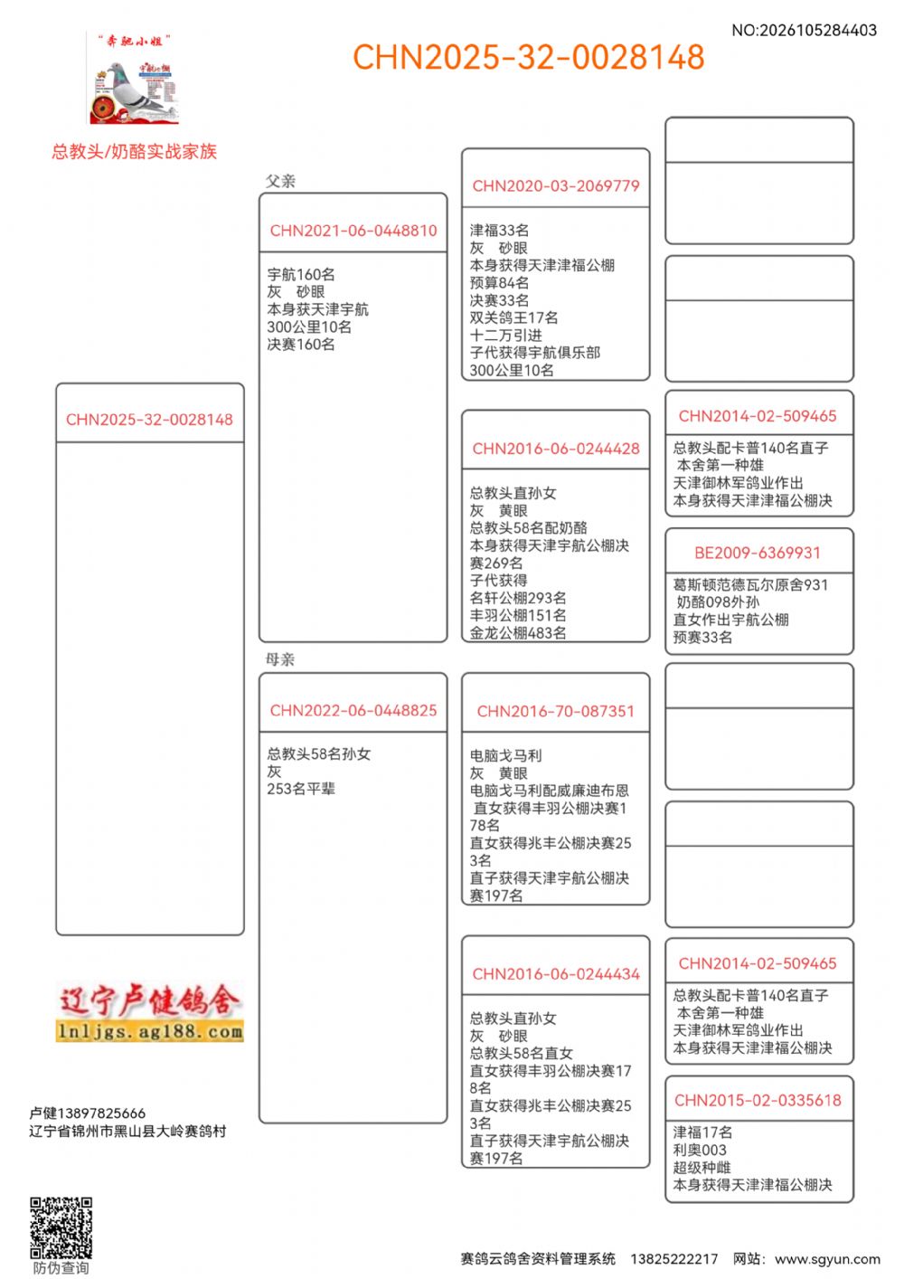 | 1645176 | 131.名轩鸽王十直子 X总教头四关冠军直女 | ¥600元 | 1次 |