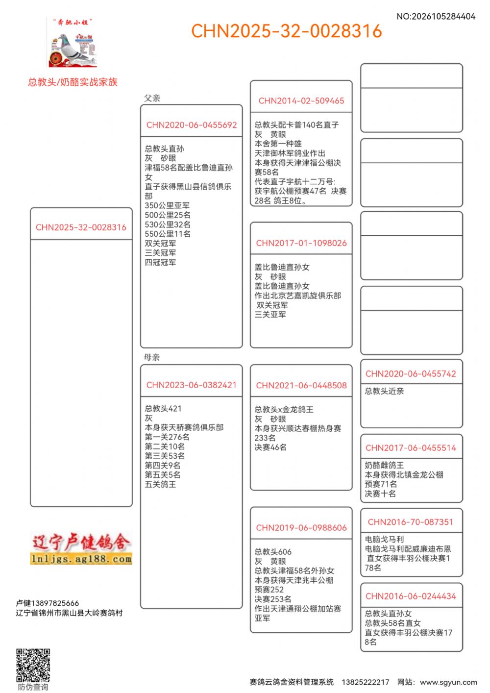 - 当前查看拍卖鸽:129.总教头四关鸽王冠军父X总教头天骄