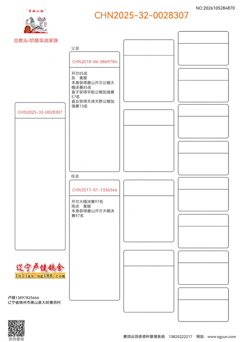 | 1645176 | 131.名轩鸽王十直子 X总教头四关冠军直女 | ¥600元 | 1次 |