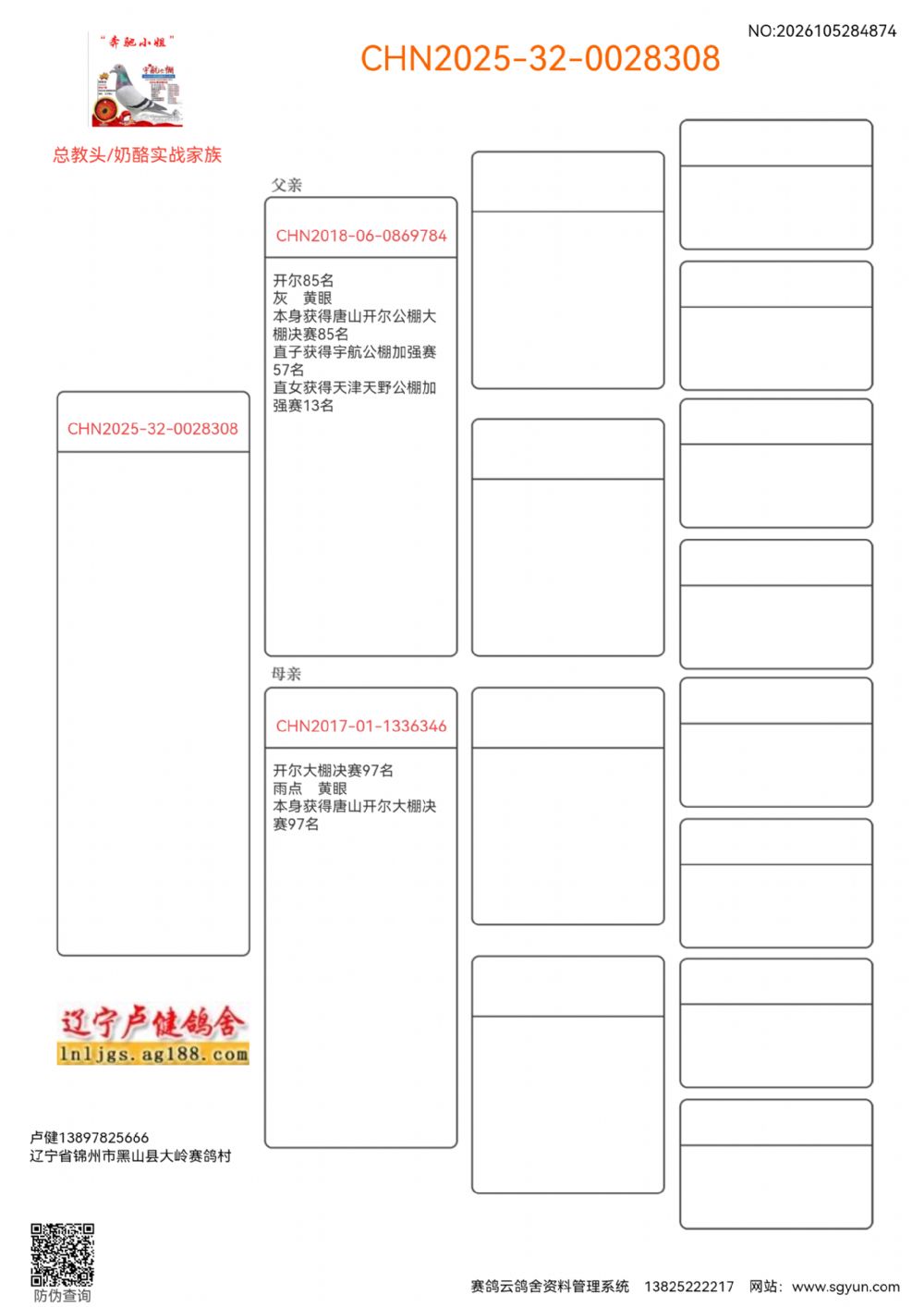 | 1645174 | 129.总教头四关鸽王冠军父X总教头天骄鸽王 | ¥600元 | 1次 |