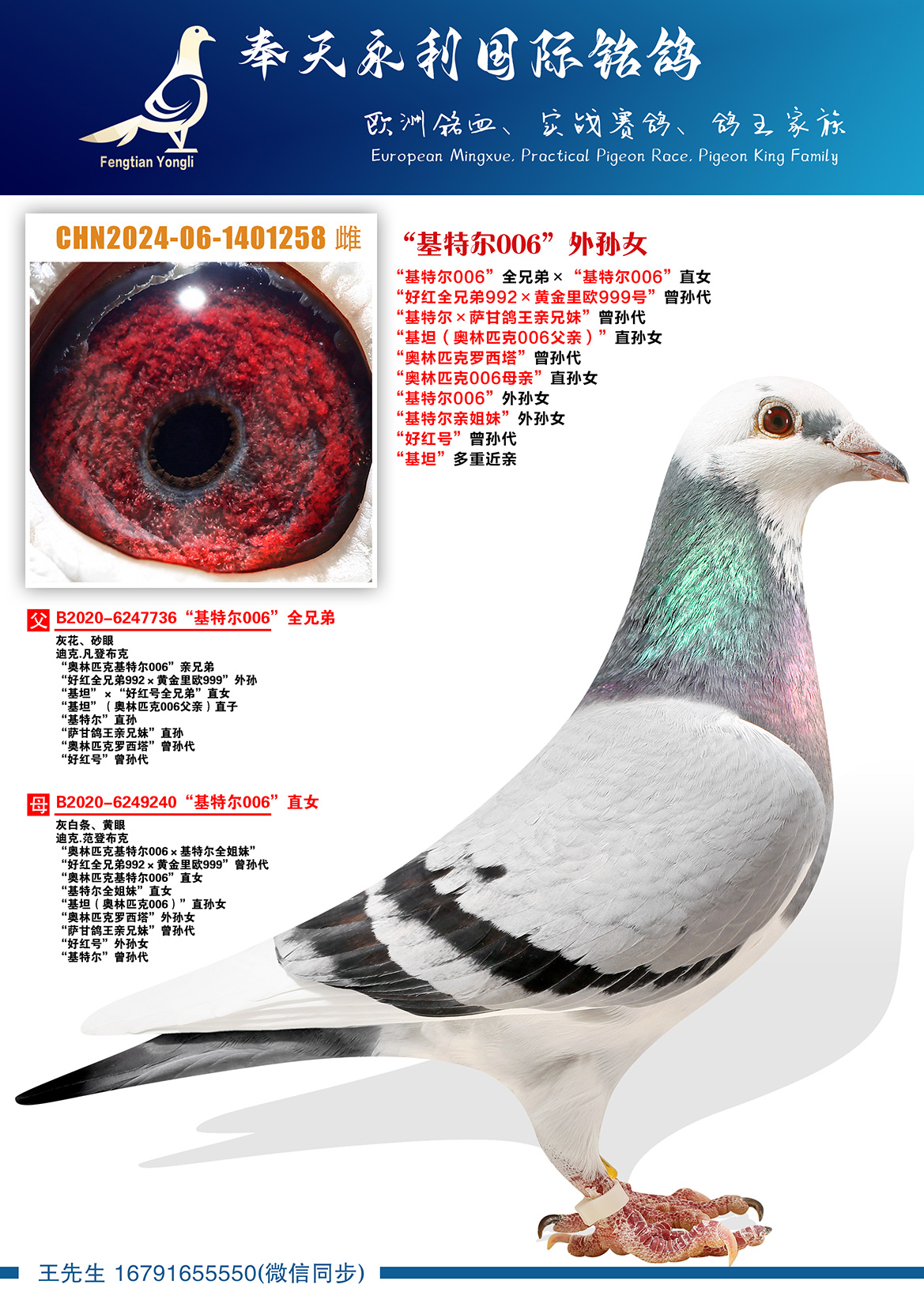 “基特尔×萨甘鸽王亲兄妹”曾孙代