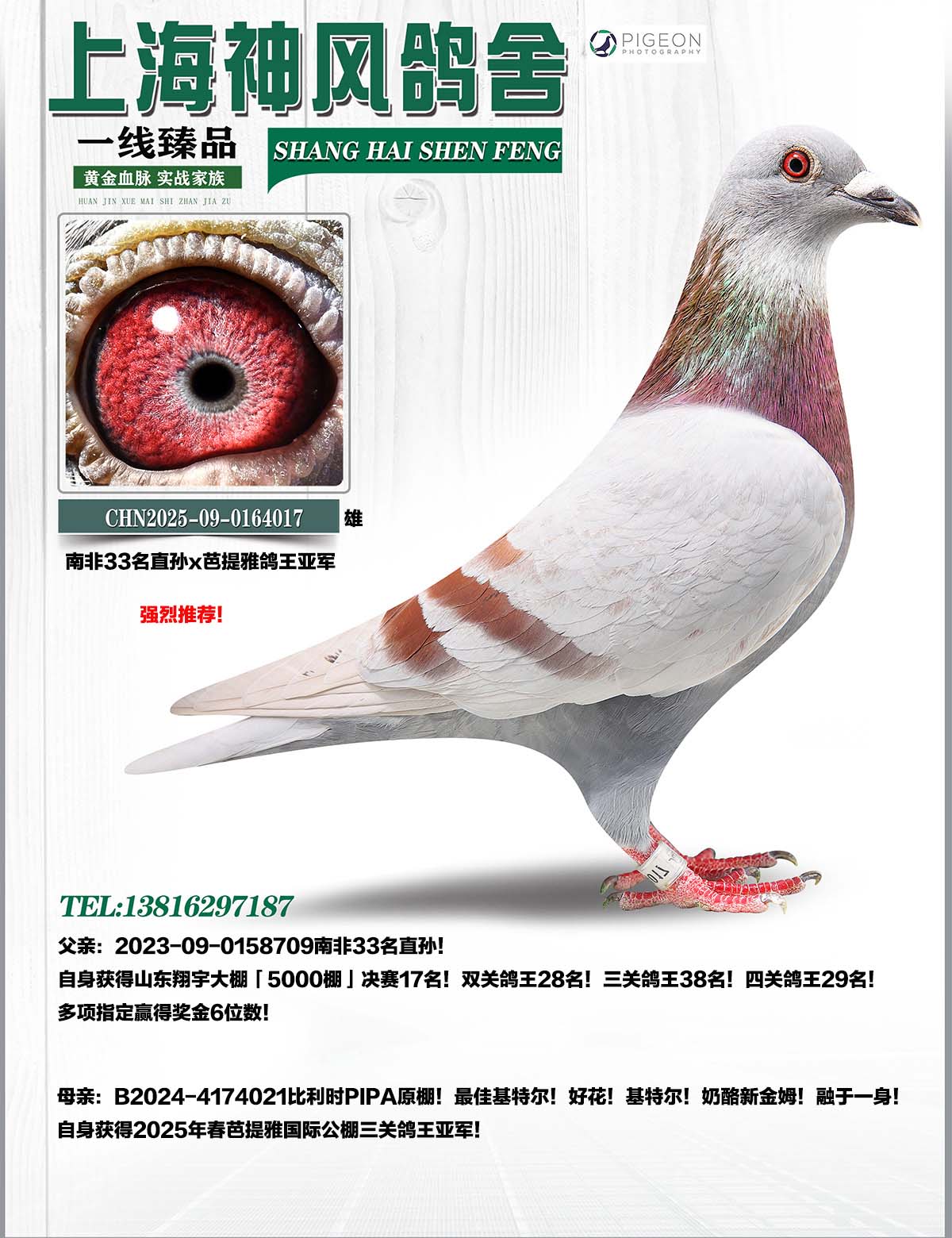 - 当前查看拍卖鸽:南非33孙翔宇17名x芭提雅鸽王亚军
