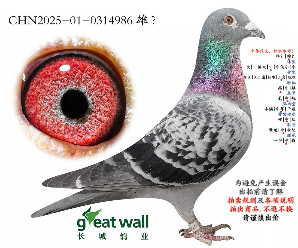 因拍卖鸽均是未做育过的种鸽或幼鸽,图内所标雌雄仅供参考,实际性别已实物为准。不做退换理由。
