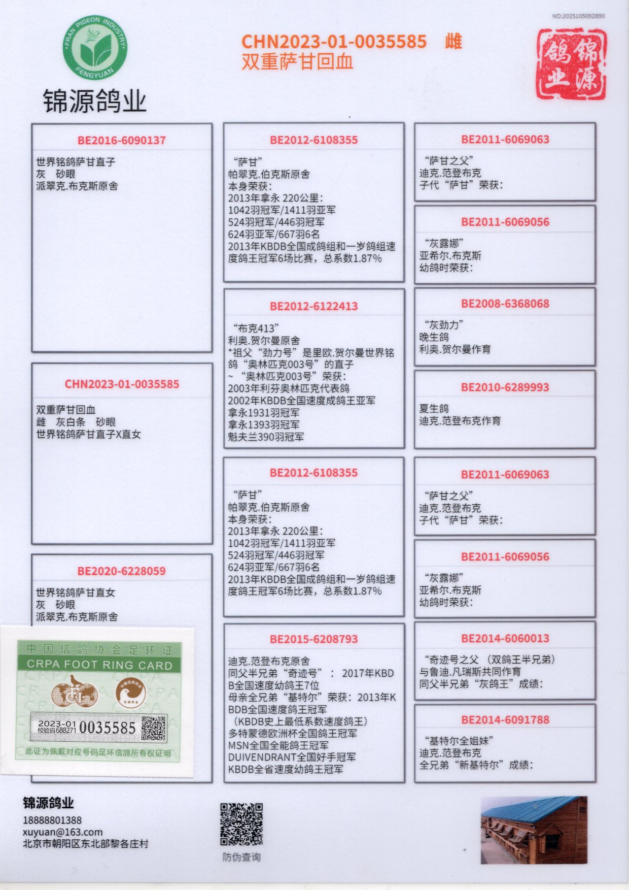 - 当前查看拍卖鸽:世界铭鸽萨甘直子X直女23-003558