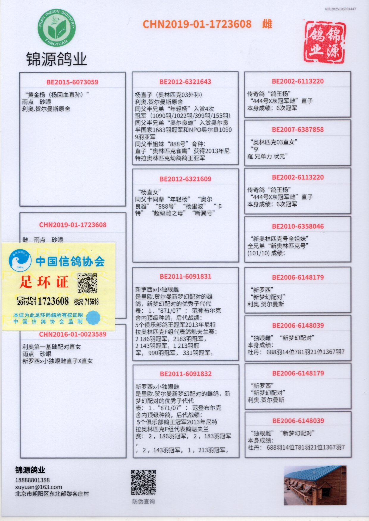 - 当前查看拍卖鸽:“黄金杨”X利奥第一基础配对直女19-1