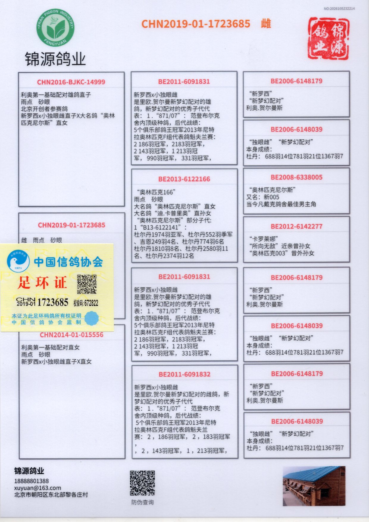 1645802 “奥林匹克03回血直孙”X利奥第一基础配对雄鸽直女 ¥0元 0次
