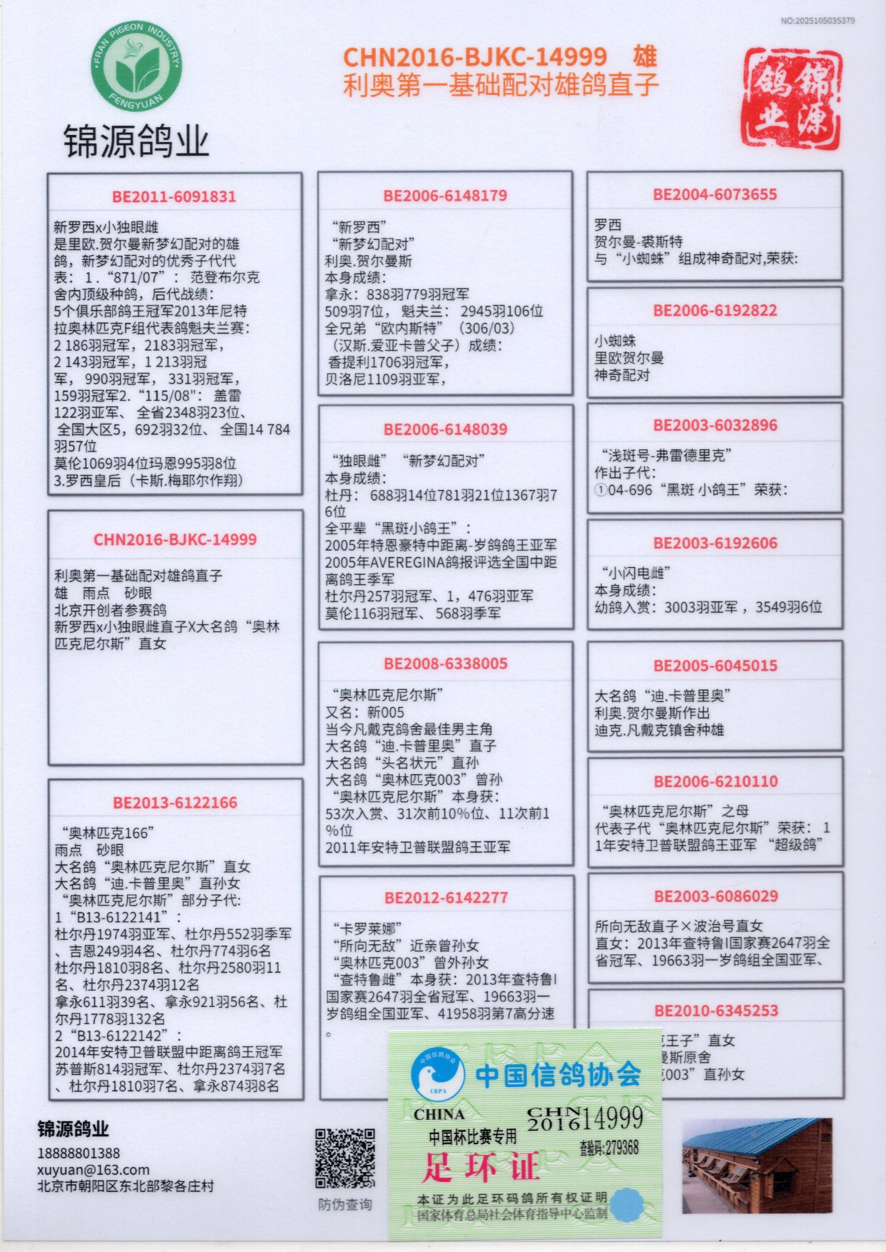 舍内顶级种鸽,后代战绩: