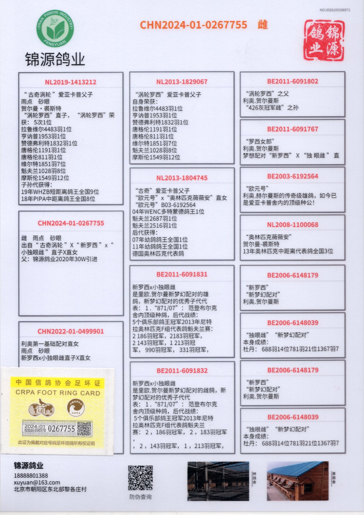 - 当前查看拍卖鸽:涡轮罗西 24-0267755雌