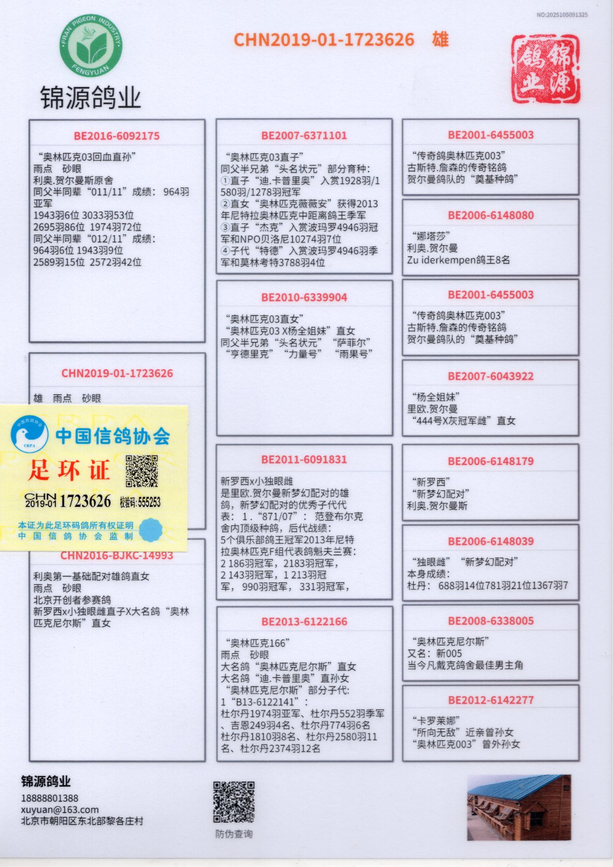 1645801 “奥林匹克03回血直孙”X利奥第一基础配对雄鸽直女 ¥0元 0次
