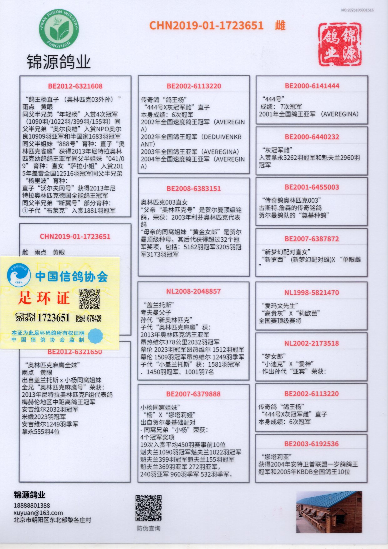 - 当前查看拍卖鸽:利奥鸽王杨X麻鹰19-1723651雌