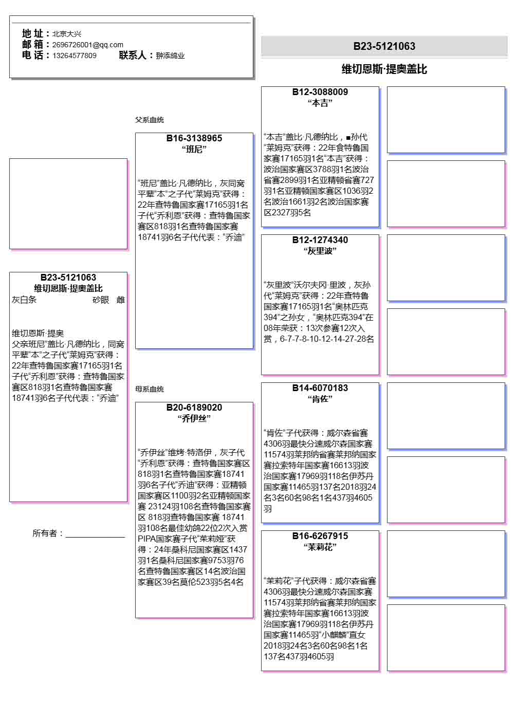 | 1645846 | 维切恩斯提奥 盖比波治国家赛3788羽冠军本吉曾孙 | ¥500元 | 0次 |