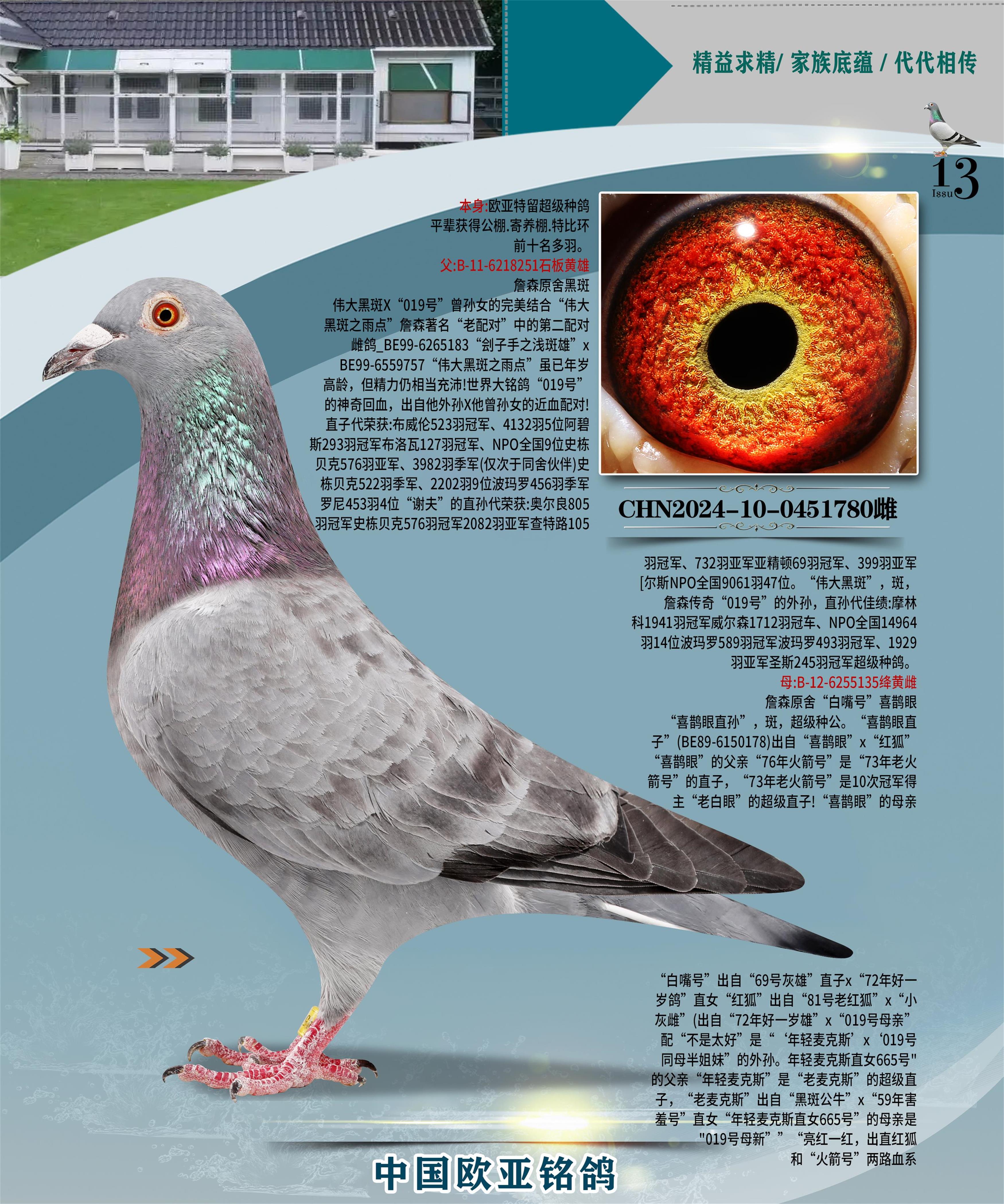 24年秋南京特比环欧亚荣获大团体冠军.小团体冠军551公里大特比13名.14名.16名.19名.20名.21名.24名.26名.27名.28名.42名.52名.54名.57名.65名.66名.68名.70名.71名.72名.74名.76名.80名.82名.83名.84名.85名.86名.90名.92名.110名.116名.121名.122名.128名.131名.158名.161名.164名.165名.166名.172名.174名.177名.182名.195名.196名.201名.205名.208名.210名.216名.253名.269名.275名.276名.294名.296名.299名,,24年秋云南天南铜都公棚决赛415名.天南铜都小棚决赛409名.云南玉活公棚决赛102名.490名.团体32名上笼二羽进二羽,天南铜都大棚506公里决赛445名。热烈祝贺河北省巨鹿县李兰生老师用欧亚泰山号血系连续十一年夺冠军,河北省国家赛冠军.全国季军等多次前十名高位,扬州王军王总用欧亚利奥24年春季获山东翔宇公棚决赛33名盖比53名。南京刘正龙刘总用欧亚盖比获得24年秋山东潍坊国际公棚决赛42名.精英赛30名.三关鸽王71名.决赛86名.加站赛16名.南京市特比环A组鸽王9名.B组鸽王5名.6名.C组鸽王5名.精英赛冠军4名.技能赛A组冠军4名.5名.秦淮区特比环荣获15名.46名.48名.87名。四川西昌徐亮徐总用欧亚利奥获得凉山州聚友决赛177名.第二关亚军双关鸽王19名.三关鸽王105名.云南豪庭公棚决赛603名。热烈祝贺24年四川重庆翔园鸽舍用欧亚泰山号荣获春季400公里冠军.秋季500公里冠军,河北王总用詹森X利奥获得千羽千翔公棚400公里冠军,广东蔡楷焕荣获24年秋爱好者 赛鸽俱乐部三关鸽王季军.一关420公里99名.二关450公里11名.三关520公里32名.单关季军.7名.12名,江西李卫兴荣获贵州红枫公棚8名.共翔俱乐部寄养棚四关综合鸽王30名.一关400公里78名.二关500公里55名.三关520公里37名.四关500公里57名.同父母获公棚18名.雷鸣获得武汉黄浦育翔中心冠军,四川陈文获得四川明鸿俱乐部300公里梦幻2名.3名.4名.9名.10名.13名.14名.15名.31名.34名.40名.41名.42名.43名.69名.71名.72名.73名.74名.94名.95名.97名.98名.99名.419公里决赛荣获总冠军7名.总共归巢9羽,四川徐亮获豪庭决赛603名,山西郑勇获得山西泰鑫公棚决赛255名詹森红狐,热烈祝贺马总获得开尔(飞跃队)决赛9名获奖金1310000万元.第一关52名,天津津福资赛180公里96名.获奖金429543万元,欧亚支持全国鸽友24年秋多人报喜 祝大家取得更好成绩,给欧亚报喜鸽友欧亚决定给每人赠送一羽超级种鸽。欧亚俱乐部特比环多关鸽王成绩:15年秋淮安特比环黑色星期一全会上笼9700多羽,当天无鸽归巢,第二天全会归巢357羽,本舍归巢158羽.前十名八羽.前一百名归巢57羽,16年春季获五关鸽王总冠军,总亚军四名.六名.七名.九名.十名.晶艺俱乐部520公里冠亚季军5名.6名.7名.9名.11名等,火车头冠军.季军6名.8名.9名.10名,16年秋晶艺俱乐部特比环520公里亚军.季军4名.6名.7名.9名,15年春南京白下特比环冠军.亚军.季军6名.7名.8名.9名.10名.指定鸽A B组获得冠军.亚军.季军4名.5名.,17年淮安特比环亚军.4名.5名.7名.8名.10名.六关鸽王总冠军.4名.6名.9名.10名,寄养棚宿迁刘总20羽特比环获冠军.季军.4名.7名.8名.9名等。18年荣获万羽特比环六关鸽王总冠军.总亚军.总季军.6名.8名.十名.单关四羽冠军.二羽亚军.四羽季军.前十名27羽。19年秋万羽特比环六关鸽王总亚军.总季军.5名.8名等,单关二羽冠军.三羽亚军.一羽季军前十名31羽。20年秋淮安市鸽会四关特比环大赛风雨无阻鸽王亚军.鸽王六名,金品俱乐部万羽特比环六关鸽王总冠军,总亚军.四名.五名.六名.七名.八名.十名.前二百名鸽王35羽,单关冠亚季军前十名四十多羽,火车头五关鸽王季军.六名.八名.前二百名鸽王十七羽。20年春荣获淮安五区一市四关鸽王总冠军.亚军.四名.八名.九名。21年秋荣获金品万羽特比环大赛六关鸽王总亚军.总季军.四名.七名.九名.十名.单关冠亚军季军前十名三十多羽。火车头协会鸽王六名.七名.十名.单关前十名十七羽。22年秋荣获鸽王总冠军.总亚军.5名.7名.8名.9名.11名.单关冠亚季军前十名三十多羽,第一关单关前二百名四十多羽,第二关前二百名三十多羽,第三关前二百名四十多羽,第四关前二百名四十多羽,第五关前一百名53羽。23年秋荣获鸽王季军.五名.八名.十名.13名.17名.20名.27名等多羽鸽王.单关前十名二十多羽。公棚.寄养棚部分成绩:16年秋宁夏黄河公棚总冠军电脑戈马力指定通炮冠军,17年送八羽参赛获得鸽王八名进奖四名,支持韩总荣获八名。支持鸽友荣获宁夏中卫公棚决赛总冠军.精英赛冠军,支持18年宁夏黄河公棚决赛冠军詹森X泰山。安徽鼎博寄养棚院内外四关鸽王总冠军.鸽王十七名.三十七名同窝,鸽王39名.42名.58名.67名。18年山东公棚预赛冠军.决赛65名.送八羽进奖五羽.指定获奔驰汽车一辆。支持鸽友获得云南蓝云公棚冠军.盖比X佛卡门。支持鸽友荣获云南银集公棚决赛冠军 詹森427X520血系 速度赛6700羽冠军。17年荣获金马俱乐部寄养棚四关鸽王总冠军.季军.六名.八名.第一关冠军.亚军.季军四名.七名.十一名.金牌教练奖。支持鸽友18年北京费翔公棚预赛九名电脑X桑杰士,支持鸽友荣获陕西威力公棚决赛11名.内蒙古临河寄养棚四关鸽王六名.詹森配泰山,支持河北王总用欧亚詹森427配胡本喜获20年秋开尔青年棚季军。云南东荣公棚16年预赛冠军.决赛77名.17年决赛12名.詹森红狐X泰山,17年平安公棚决赛4名 詹森427。欧亚获得21年金母寄养棚第一关四名.第二关5名.第三关5名.6名.7名.10名.三关鸽王总冠军,四关鸽王14名.十羽鸽王。支持河
