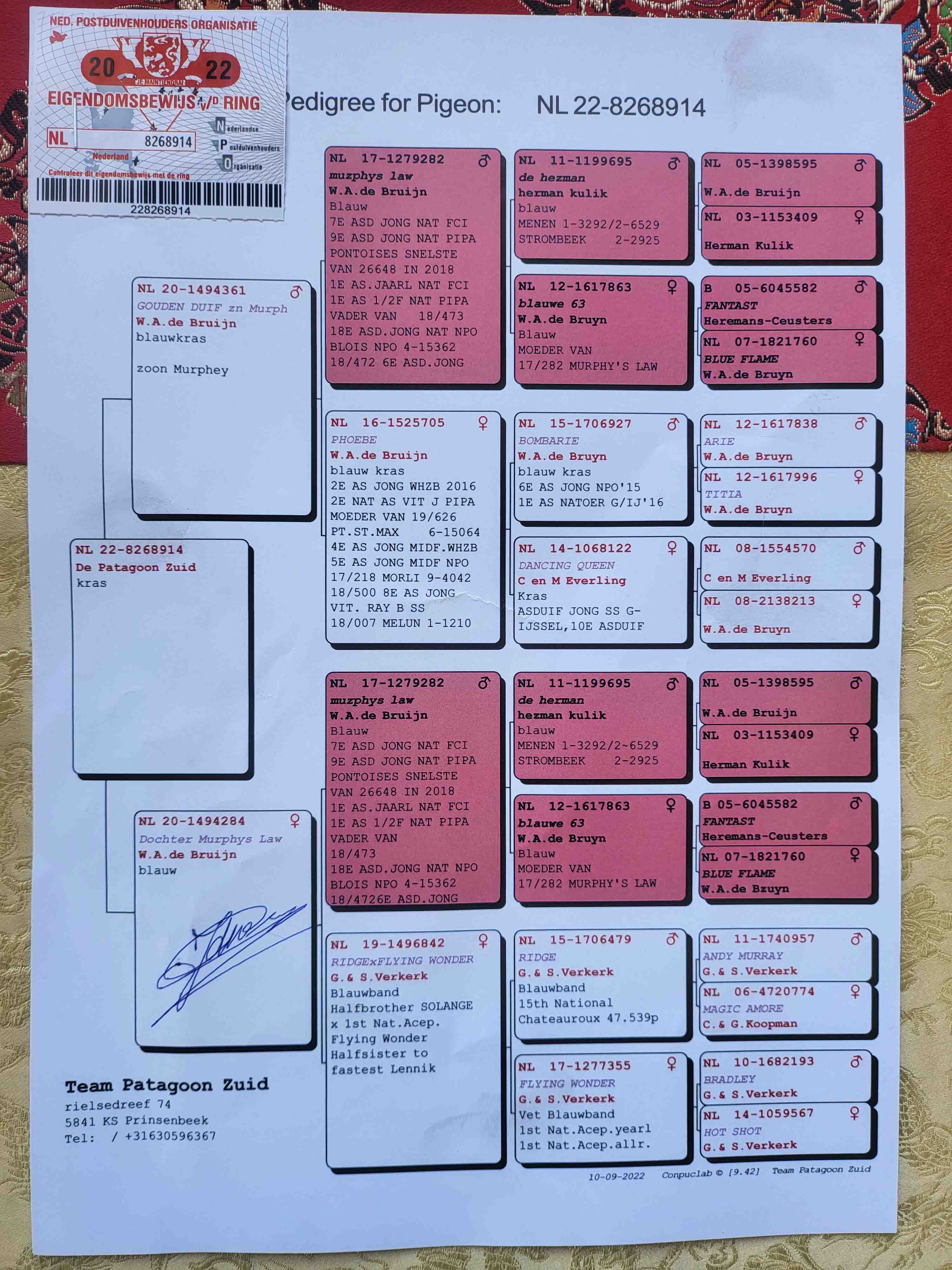 | 1645846 | 维切恩斯提奥 盖比波治国家赛3788羽冠军本吉曾孙 | ¥500元 | 0次 |