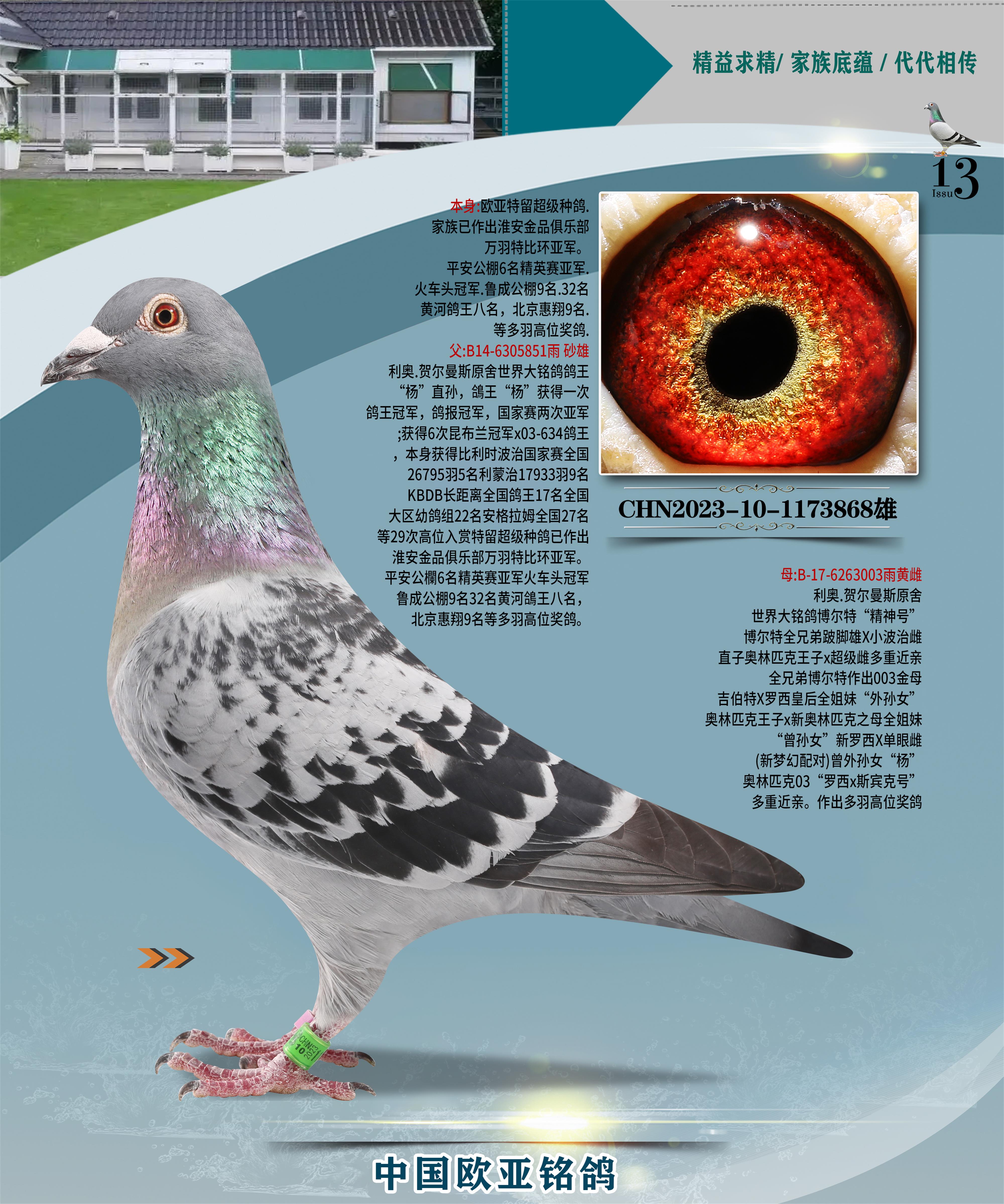 24年秋南京特比环欧亚荣获大团体冠军.小团体冠军551公里大特比13名.14名.16名.19名.20名.21名.24名.26名.27名.28名.42名.52名.54名.57名.65名.66名.68名.70名.71名.72名.74名.76名.80名.82名.83名.84名.85名.86名.90名.92名.110名.116名.121名.122名.128名.131名.158名.161名.164名.165名.166名.172名.174名.177名.182名.195名.196名.201名.205名.208名.210名.216名.253名.269名.275名.276名.294名.296名.299名,,24年秋云南天南铜都公棚决赛415名.天南铜都小棚决赛409名.云南玉活公棚决赛102名.490名.团体32名上笼二羽进二羽,天南铜都大棚506公里决赛445名。热烈祝贺河北省巨鹿县李兰生老师用欧亚泰山号血系连续十一年夺冠军,河北省国家赛冠军.全国季军等多次前十名高位,扬州王军王总用欧亚利奥24年春季获山东翔宇公棚决赛33名盖比53名。南京刘正龙刘总用欧亚盖比获得24年秋山东潍坊国际公棚决赛42名.精英赛30名.三关鸽王71名.决赛86名.加站赛16名.南京市特比环A组鸽王9名.B组鸽王5名.6名.C组鸽王5名.精英赛冠军4名.技能赛A组冠军4名.5名.秦淮区特比环荣获15名.46名.48名.87名。四川西昌徐亮徐总用欧亚利奥获得凉山州聚友决赛177名.第二关亚军双关鸽王19名.三关鸽王105名.云南豪庭公棚决赛603名。热烈祝贺24年四川重庆翔园鸽舍用欧亚泰山号荣获春季400公里冠军.秋季500公里冠军,河北王总用詹森X利奥获得千羽千翔公棚400公里冠军,广东蔡楷焕荣获24年秋爱好者 赛鸽俱乐部三关鸽王季军.一关420公里99名.二关450公里11名.三关520公里32名.单关季军.7名.12名,江西李卫兴荣获贵州红枫公棚8名.共翔俱乐部寄养棚四关综合鸽王30名.一关400公里78名.二关500公里55名.三关520公里37名.四关500公里57名.同父母获公棚18名.雷鸣获得武汉黄浦育翔中心冠军,四川陈文获得四川明鸿俱乐部300公里梦幻2名.3名.4名.9名.10名.13名.14名.15名.31名.34名.40名.41名.42名.43名.69名.71名.72名.73名.74名.94名.95名.97名.98名.99名.419公里决赛荣获总冠军7名.总共归巢9羽,四川徐亮获豪庭决赛603名,山西郑勇获得山西泰鑫公棚决赛255名詹森红狐,热烈祝贺马总获得开尔(飞跃队)决赛9名获奖金1310000万元.第一关52名,天津津福资赛180公里96名.获奖金429543万元,欧亚支持全国鸽友24年秋多人报喜 祝大家取得更好成绩,给欧亚报喜鸽友欧亚决定给每人赠送一羽超级种鸽。欧亚俱乐部特比环多关鸽王成绩:15年秋淮安特比环黑色星期一全会上笼9700多羽,当天无鸽归巢,第二天全会归巢357羽,本舍归巢158羽.前十名八羽.前一百名归巢57羽,16年春季获五关鸽王总冠军,总亚军四名.六名.七名.九名.十名.晶艺俱乐部520公里冠亚季军5名.6名.7名.9名.11名等,火车头冠军.季军6名.8名.9名.10名,16年秋晶艺俱乐部特比环520公里亚军.季军4名.6名.7名.9名,15年春南京白下特比环冠军.亚军.季军6名.7名.8名.9名.10名.指定鸽A B组获得冠军.亚军.季军4名.5名.,17年淮安特比环亚军.4名.5名.7名.8名.10名.六关鸽王总冠军.4名.6名.9名.10名,寄养棚宿迁刘总20羽特比环获冠军.季军.4名.7名.8名.9名等。18年荣获万羽特比环六关鸽王总冠军.总亚军.总季军.6名.8名.十名.单关四羽冠军.二羽亚军.四羽季军.前十名27羽。19年秋万羽特比环六关鸽王总亚军.总季军.5名.8名等,单关二羽冠军.三羽亚军.一羽季军前十名31羽。20年秋淮安市鸽会四关特比环大赛风雨无阻鸽王亚军.鸽王六名,金品俱乐部万羽特比环六关鸽王总冠军,总亚军.四名.五名.六名.七名.八名.十名.前二百名鸽王35羽,单关冠亚季军前十名四十多羽,火车头五关鸽王季军.六名.八名.前二百名鸽王十七羽。20年春荣获淮安五区一市四关鸽王总冠军.亚军.四名.八名.九名。21年秋荣获金品万羽特比环大赛六关鸽王总亚军.总季军.四名.七名.九名.十名.单关冠亚军季军前十名三十多羽。火车头协会鸽王六名.七名.十名.单关前十名十七羽。22年秋荣获鸽王总冠军.总亚军.5名.7名.8名.9名.11名.单关冠亚季军前十名三十多羽,第一关单关前二百名四十多羽,第二关前二百名三十多羽,第三关前二百名四十多羽,第四关前二百名四十多羽,第五关前一百名53羽。23年秋荣获鸽王季军.五名.八名.十名.13名.17名.20名.27名等多羽鸽王.单关前十名二十多羽。公棚.寄养棚部分成绩:16年秋宁夏黄河公棚总冠军电脑戈马力指定通炮冠军,17年送八羽参赛获得鸽王八名进奖四名,支持韩总荣获八名。支持鸽友荣获宁夏中卫公棚决赛总冠军.精英赛冠军,支持18年宁夏黄河公棚决赛冠军詹森X泰山。安徽鼎博寄养棚院内外四关鸽王总冠军.鸽王十七名.三十七名同窝,鸽王39名.42名.58名.67名。18年山东公棚预赛冠军.决赛65名.送八羽进奖五羽.指定获奔驰汽车一辆。支持鸽友获得云南蓝云公棚冠军.盖比X佛卡门。支持鸽友荣获云南银集公棚决赛冠军 詹森427X520血系 速度赛6700羽冠军。17年荣获金马俱乐部寄养棚四关鸽王总冠军.季军.六名.八名.第一关冠军.亚军.季军四名.七名.十一名.金牌教练奖。支持鸽友18年北京费翔公棚预赛九名电脑X桑杰士,支持鸽友荣获陕西威力公棚决赛11名.内蒙古临河寄养棚四关鸽王六名.詹森配泰山,支持河北王总用欧亚詹森427配胡本喜获20年秋开尔青年棚季军。云南东荣公棚16年预赛冠军.决赛77名.17年决赛12名.詹森红狐X泰山,17年平安公棚决赛4名 詹森427。欧亚获得21年金母寄养棚第一关四名.第二关5名.第三关5名.6名.7名.10名.三关鸽王总冠军,四关鸽王14名.十羽鸽王。支持河