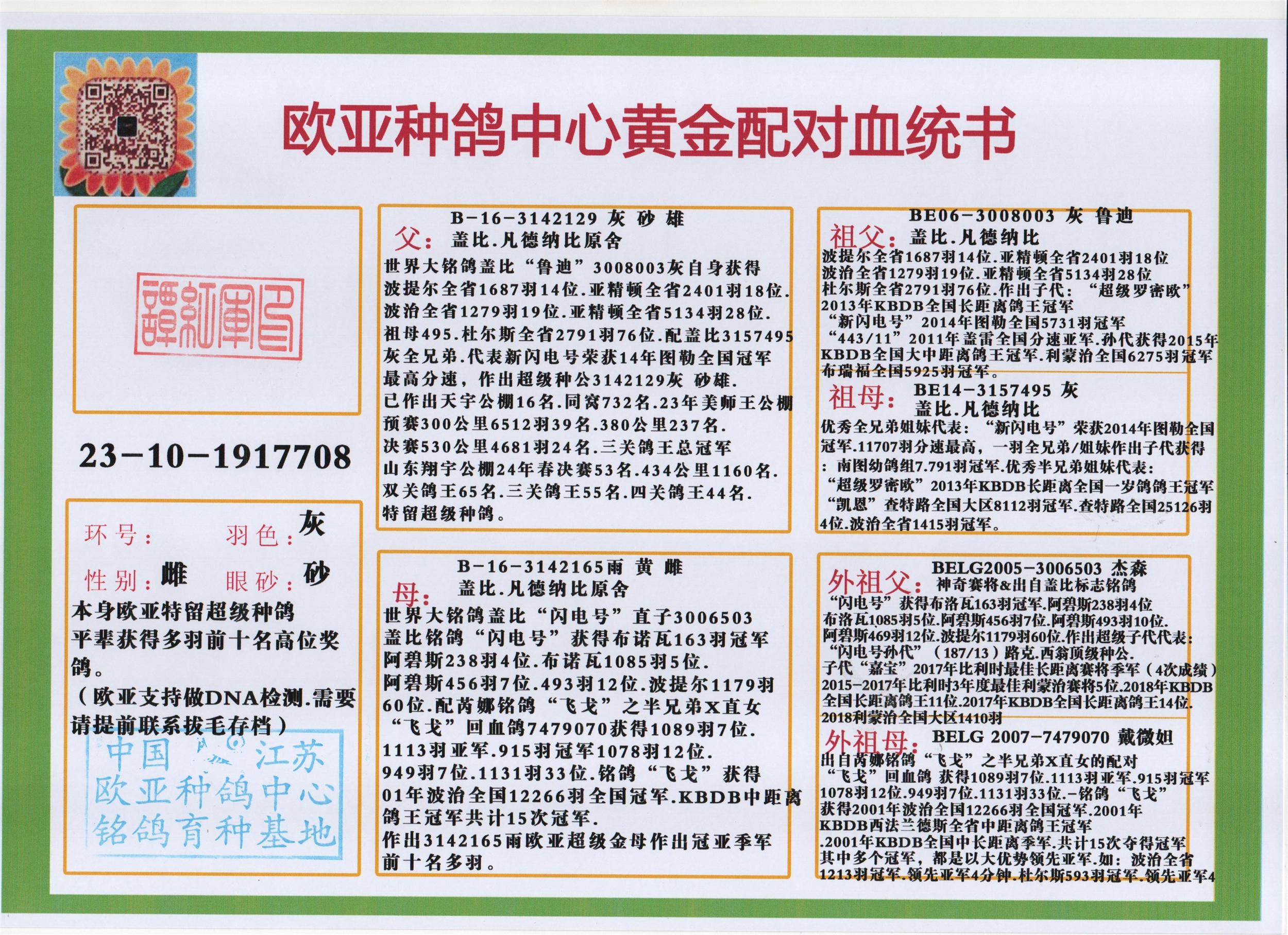 24年秋南京特比环欧亚荣获大团体冠军.小团体冠军551公里大特比13名.14名.16名.19名.20名.21名.24名.26名.27名.28名.42名.52名.54名.57名.65名.66名.68名.70名.71名.72名.74名.76名.80名.82名.83名.84名.85名.86名.90名.92名.110名.116名.121名.122名.128名.131名.158名.161名.164名.165名.166名.172名.174名.177名.182名.195名.196名.201名.205名.208名.210名.216名.253名.269名.275名.276名.294名.296名.299名,,24年秋云南天南铜都公棚决赛415名.天南铜都小棚决赛409名.云南玉活公棚决赛102名.490名.团体32名上笼二羽进二羽,天南铜都大棚506公里决赛445名。热烈祝贺河北省巨鹿县李兰生老师用欧亚泰山号血系连续十一年夺冠军,河北省国家赛冠军.全国季军等多次前十名高位,扬州王军王总用欧亚利奥24年春季获山东翔宇公棚决赛33名盖比53名。南京刘正龙刘总用欧亚盖比获得24年秋山东潍坊国际公棚决赛42名.精英赛30名.三关鸽王71名.决赛86名.加站赛16名.南京市特比环A组鸽王9名.B组鸽王5名.6名.C组鸽王5名.精英赛冠军4名.技能赛A组冠军4名.5名.秦淮区特比环荣获15名.46名.48名.87名。四川西昌徐亮徐总用欧亚利奥获得凉山州聚友决赛177名.第二关亚军双关鸽王19名.三关鸽王105名.云南豪庭公棚决赛603名。热烈祝贺24年四川重庆翔园鸽舍用欧亚泰山号荣获春季400公里冠军.秋季500公里冠军,河北王总用詹森X利奥获得千羽千翔公棚400公里冠军,广东蔡楷焕荣获24年秋爱好者 赛鸽俱乐部三关鸽王季军.一关420公里99名.二关450公里11名.三关520公里32名.单关季军.7名.12名,江西李卫兴荣获贵州红枫公棚8名.共翔俱乐部寄养棚四关综合鸽王30名.一关400公里78名.二关500公里55名.三关520公里37名.四关500公里57名.同父母获公棚18名.雷鸣获得武汉黄浦育翔中心冠军,四川陈文获得四川明鸿俱乐部300公里梦幻2名.3名.4名.9名.10名.13名.14名.15名.31名.34名.40名.41名.42名.43名.69名.71名.72名.73名.74名.94名.95名.97名.98名.99名.419公里决赛荣获总冠军7名.总共归巢9羽,四川徐亮获豪庭决赛603名,山西郑勇获得山西泰鑫公棚决赛255名詹森红狐,热烈祝贺马总获得开尔(飞跃队)决赛9名获奖金1310000万元.第一关52名,天津津福资赛180公里96名.获奖金429543万元,欧亚支持全国鸽友24年秋多人报喜 祝大家取得更好成绩,给欧亚报喜鸽友欧亚决定给每人赠送一羽超级种鸽。欧亚俱乐部特比环多关鸽王成绩:15年秋淮安特比环黑色星期一全会上笼9700多羽,当天无鸽归巢,第二天全会归巢357羽,本舍归巢158羽.前十名八羽.前一百名归巢57羽,16年春季获五关鸽王总冠军,总亚军四名.六名.七名.九名.十名.晶艺俱乐部520公里冠亚季军5名.6名.7名.9名.11名等,火车头冠军.季军6名.8名.9名.10名,16年秋晶艺俱乐部特比环520公里亚军.季军4名.6名.7名.9名,15年春南京白下特比环冠军.亚军.季军6名.7名.8名.9名.10名.指定鸽A B组获得冠军.亚军.季军4名.5名.,17年淮安特比环亚军.4名.5名.7名.8名.10名.六关鸽王总冠军.4名.6名.9名.10名,寄养棚宿迁刘总20羽特比环获冠军.季军.4名.7名.8名.9名等。18年荣获万羽特比环六关鸽王总冠军.总亚军.总季军.6名.8名.十名.单关四羽冠军.二羽亚军.四羽季军.前十名27羽。19年秋万羽特比环六关鸽王总亚军.总季军.5名.8名等,单关二羽冠军.三羽亚军.一羽季军前十名31羽。20年秋淮安市鸽会四关特比环大赛风雨无阻鸽王亚军.鸽王六名,金品俱乐部万羽特比环六关鸽王总冠军,总亚军.四名.五名.六名.七名.八名.十名.前二百名鸽王35羽,单关冠亚季军前十名四十多羽,火车头五关鸽王季军.六名.八名.前二百名鸽王十七羽。20年春荣获淮安五区一市四关鸽王总冠军.亚军.四名.八名.九名。21年秋荣获金品万羽特比环大赛六关鸽王总亚军.总季军.四名.七名.九名.十名.单关冠亚军季军前十名三十多羽。火车头协会鸽王六名.七名.十名.单关前十名十七羽。22年秋荣获鸽王总冠军.总亚军.5名.7名.8名.9名.11名.单关冠亚季军前十名三十多羽,第一关单关前二百名四十多羽,第二关前二百名三十多羽,第三关前二百名四十多羽,第四关前二百名四十多羽,第五关前一百名53羽。23年秋荣获鸽王季军.五名.八名.十名.13名.17名.20名.27名等多羽鸽王.单关前十名二十多羽。公棚.寄养棚部分成绩:16年秋宁夏黄河公棚总冠军电脑戈马力指定通炮冠军,17年送八羽参赛获得鸽王八名进奖四名,支持韩总荣获八名。支持鸽友荣获宁夏中卫公棚决赛总冠军.精英赛冠军,支持18年宁夏黄河公棚决赛冠军詹森X泰山。安徽鼎博寄养棚院内外四关鸽王总冠军.鸽王十七名.三十七名同窝,鸽王39名.42名.58名.67名。18年山东公棚预赛冠军.决赛65名.送八羽进奖五羽.指定获奔驰汽车一辆。支持鸽友获得云南蓝云公棚冠军.盖比X佛卡门。支持鸽友荣获云南银集公棚决赛冠军 詹森427X520血系 速度赛6700羽冠军。17年荣获金马俱乐部寄养棚四关鸽王总冠军.季军.六名.八名.第一关冠军.亚军.季军四名.七名.十一名.金牌教练奖。支持鸽友18年北京费翔公棚预赛九名电脑X桑杰士,支持鸽友荣获陕西威力公棚决赛11名.内蒙古临河寄养棚四关鸽王六名.詹森配泰山,支持河北王总用欧亚詹森427配胡本喜获20年秋开尔青年棚季军。云南东荣公棚16年预赛冠军.决赛77名.17年决赛12名.詹森红狐X泰山,17年平安公棚决赛4名 詹森427。欧亚获得21年金母寄养棚第一关四名.第二关5名.第三关5名.6名.7名.10名.三关鸽王总冠军,四关鸽王14名.十羽鸽王。支持河