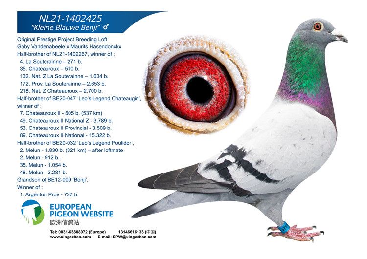 ③直孙女“娜塔莉亚”获得2004年安特卫普联盟一岁鸽鸽王冠军和2005年KBDB全国鸽王10位