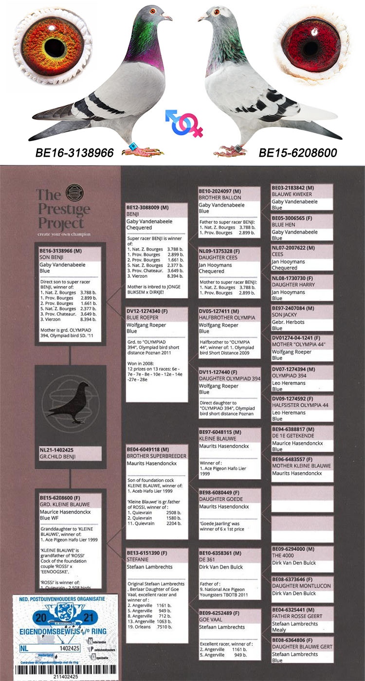 --“奥林匹克394”(“欧元全兄弟”直子)X“神奇鸽后直孙女”(“奥林匹克44”“超级11”半姐妹)作出