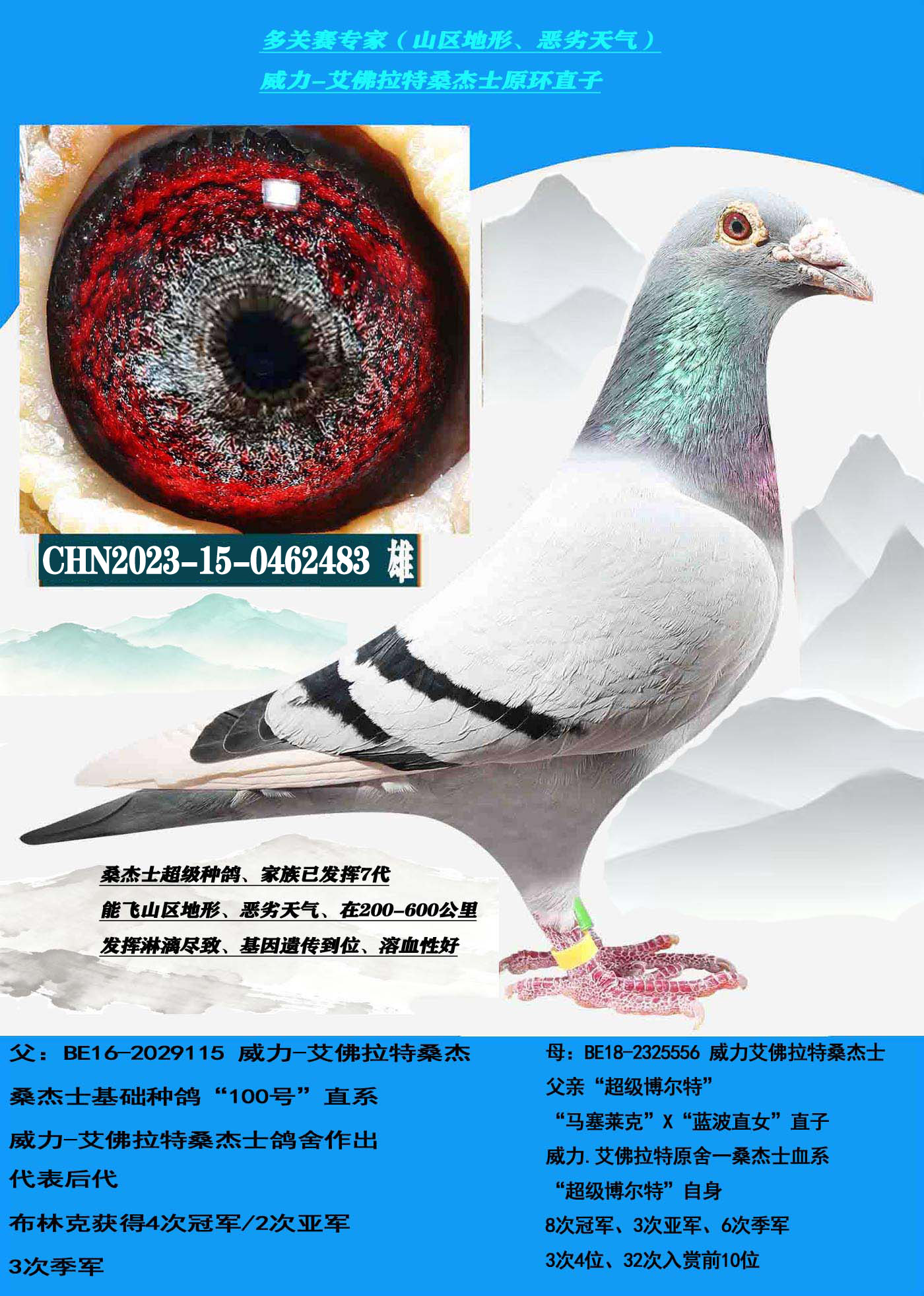 1646174 (吃苦耐劳 恶劣天气)多关赛高级提速种鸽 ¥600元 0次