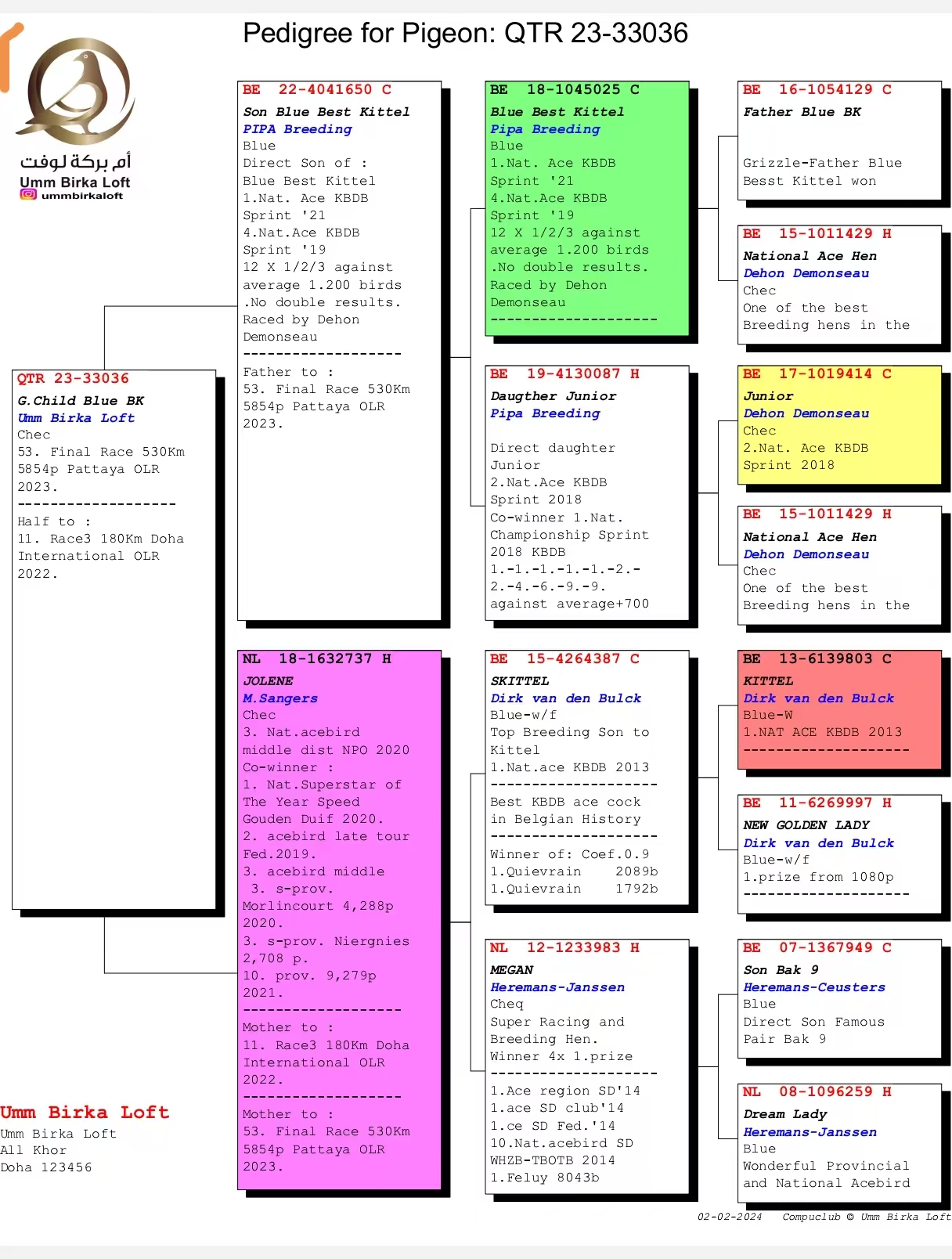 | 1646203 | 芭提雅53配黄金阿尔加维25作出,雌鸽374 | ¥3000元 | 0次 |