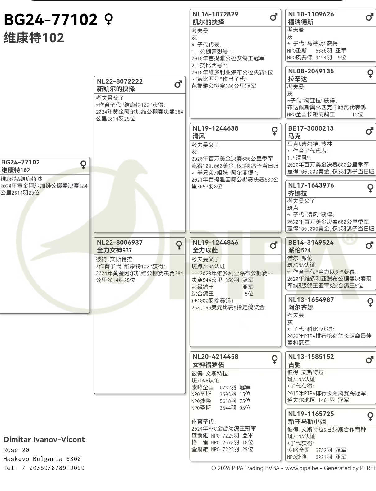 此鸽只有父母的电子版资料,父母鸽均在本期专题里面,详细资料可以看父母的拍卖资料