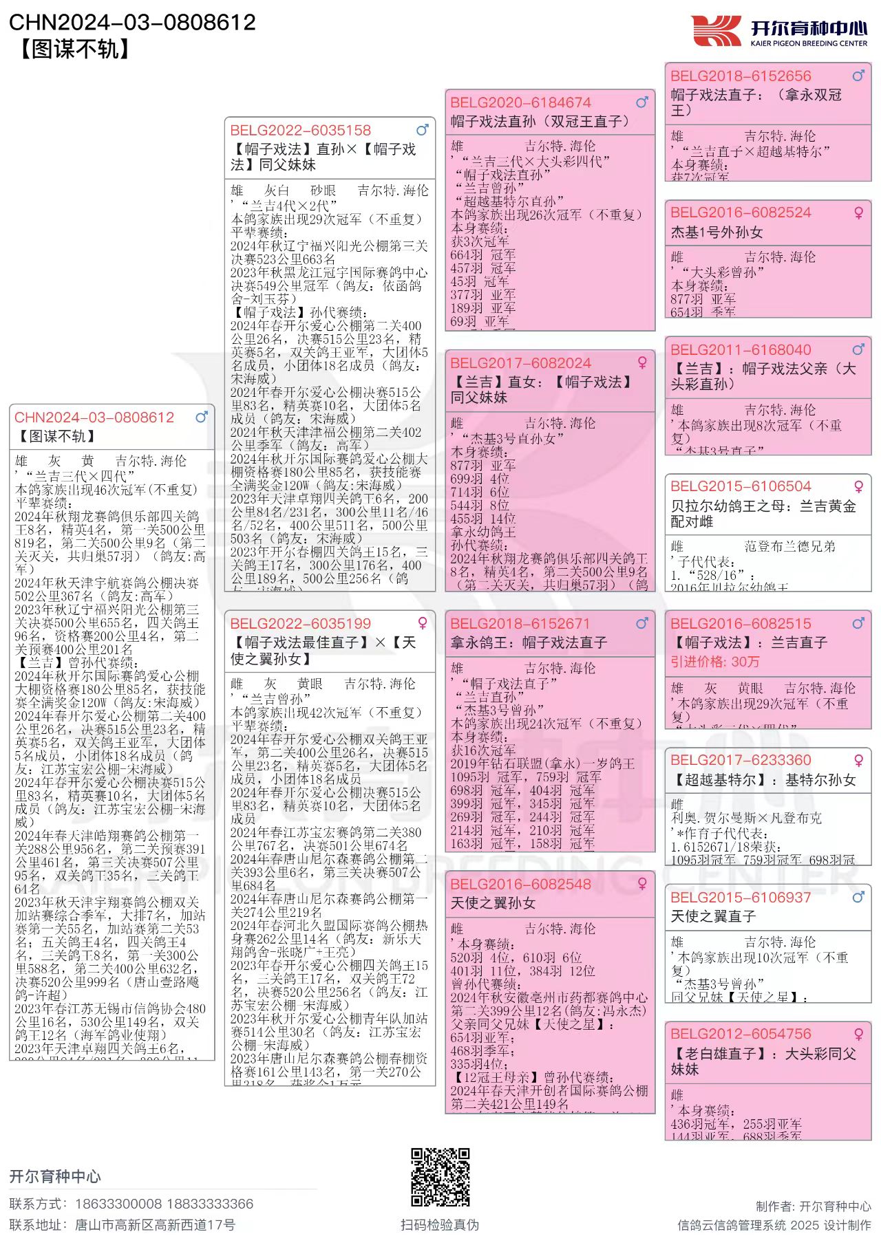 此鸽只有父母的电子版资料,父母鸽均在本期专题里面,详细资料可以看父母的拍卖资料