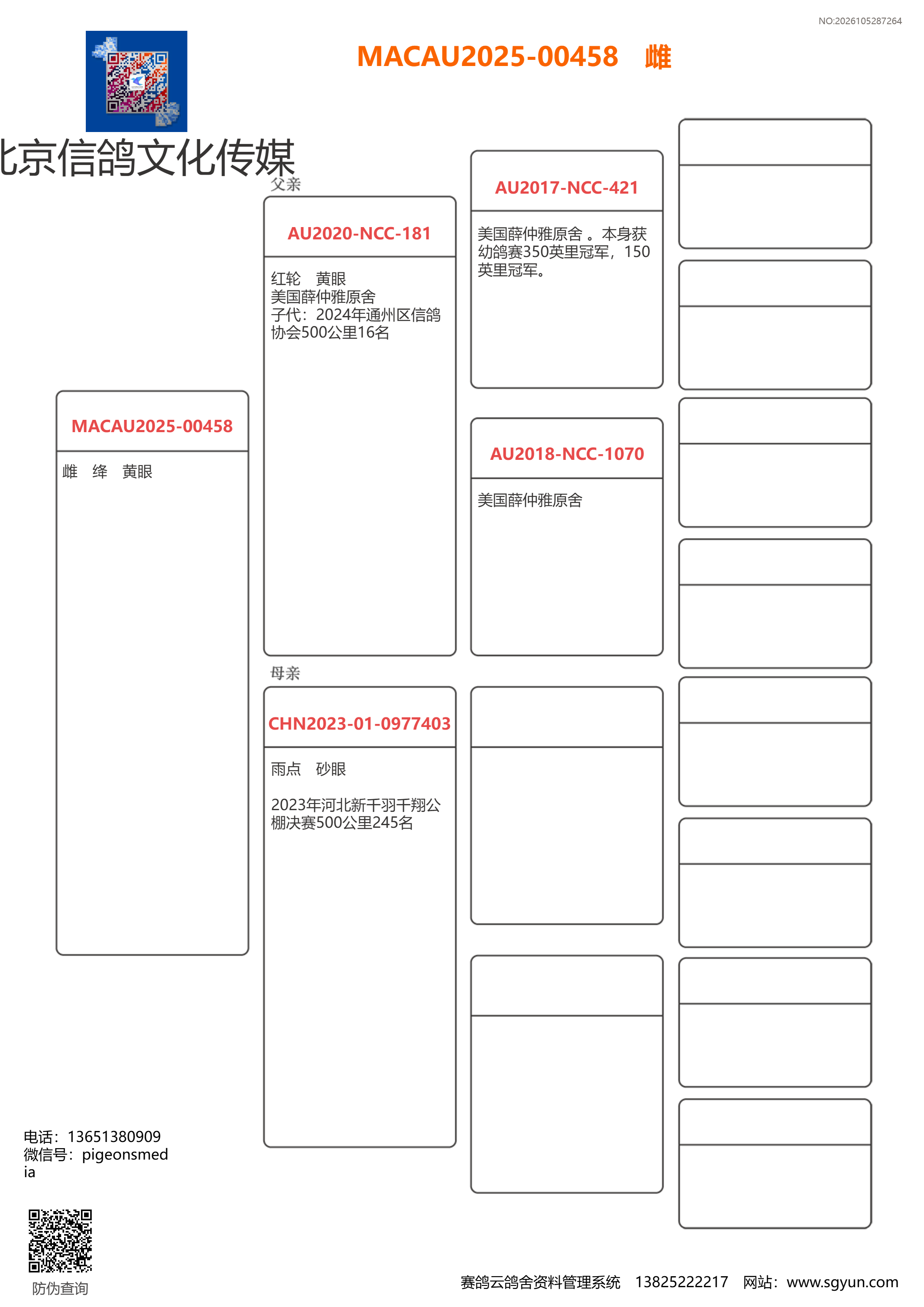 1646243 999鸽业 三关冠军外孙 ¥0元 0次