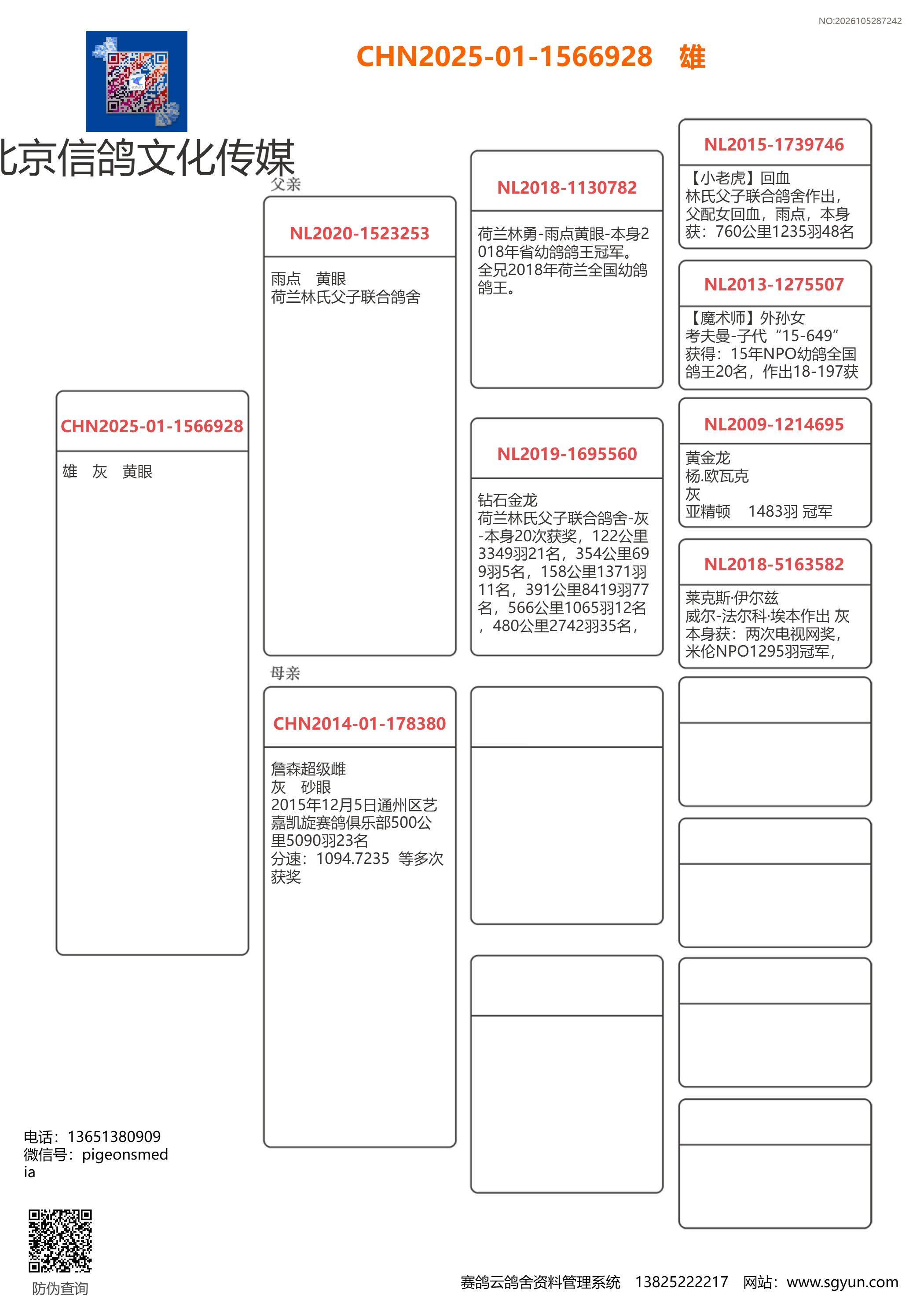 1646243 999鸽业 三关冠军外孙 ¥0元 0次