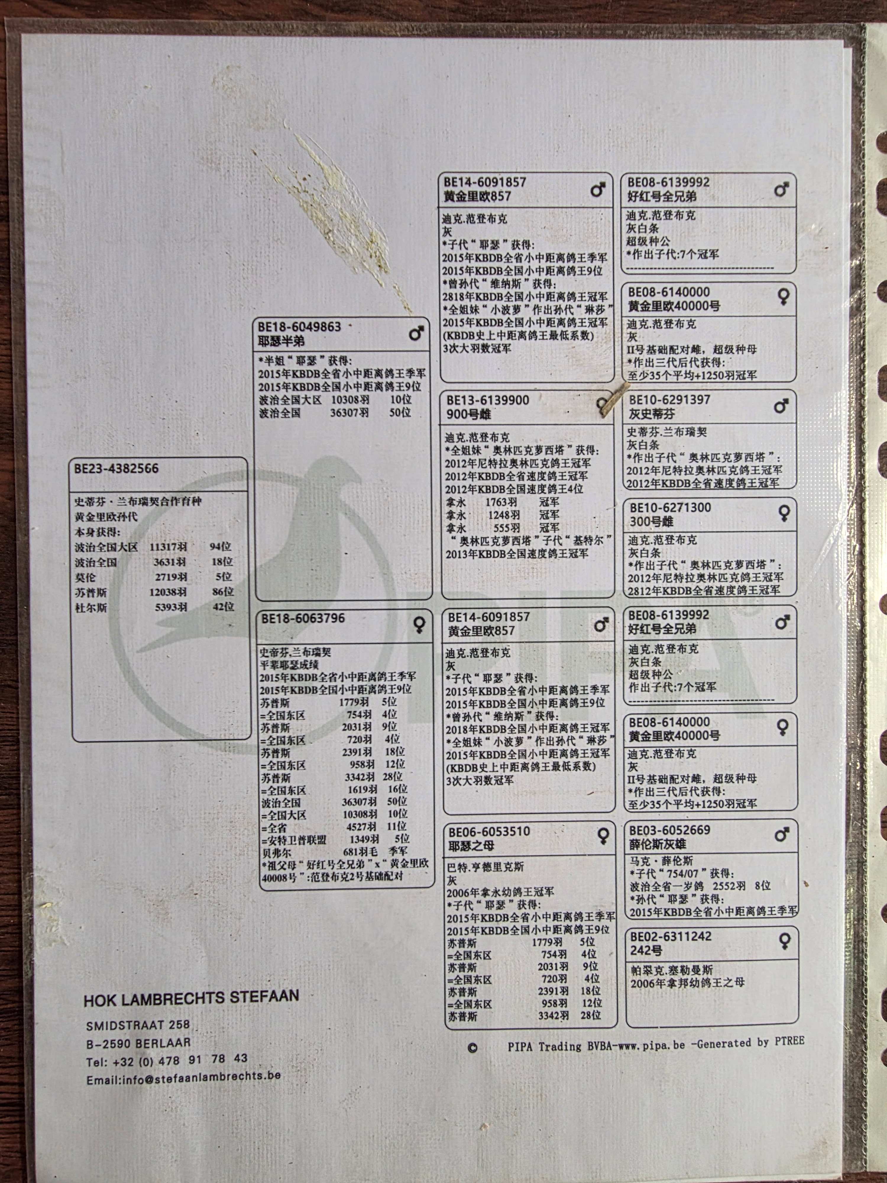 1646299 利奥轩赛鸽舍 444直子X杨半平辈直女 本身成绩2742羽季军 ¥300元 1次