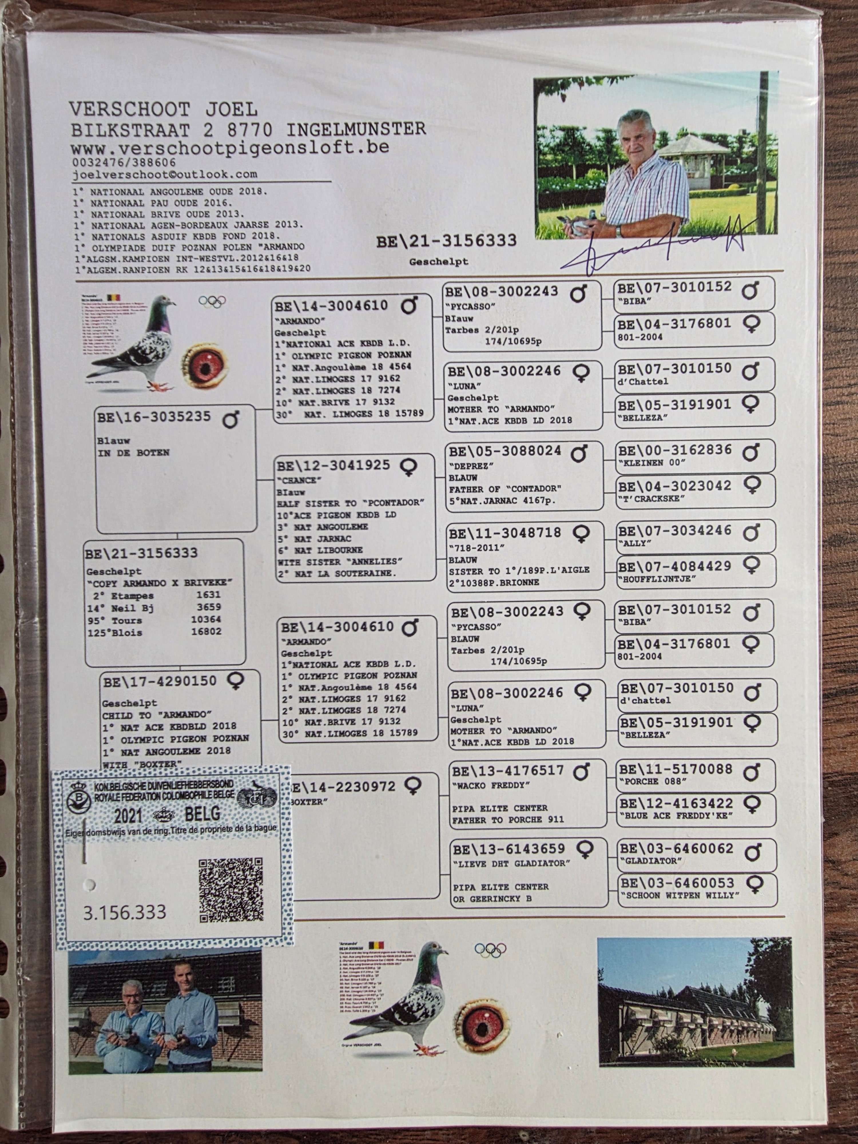 1646295 杰夫·凡温克 本身荣获6002羽12位 ¥300元 0次