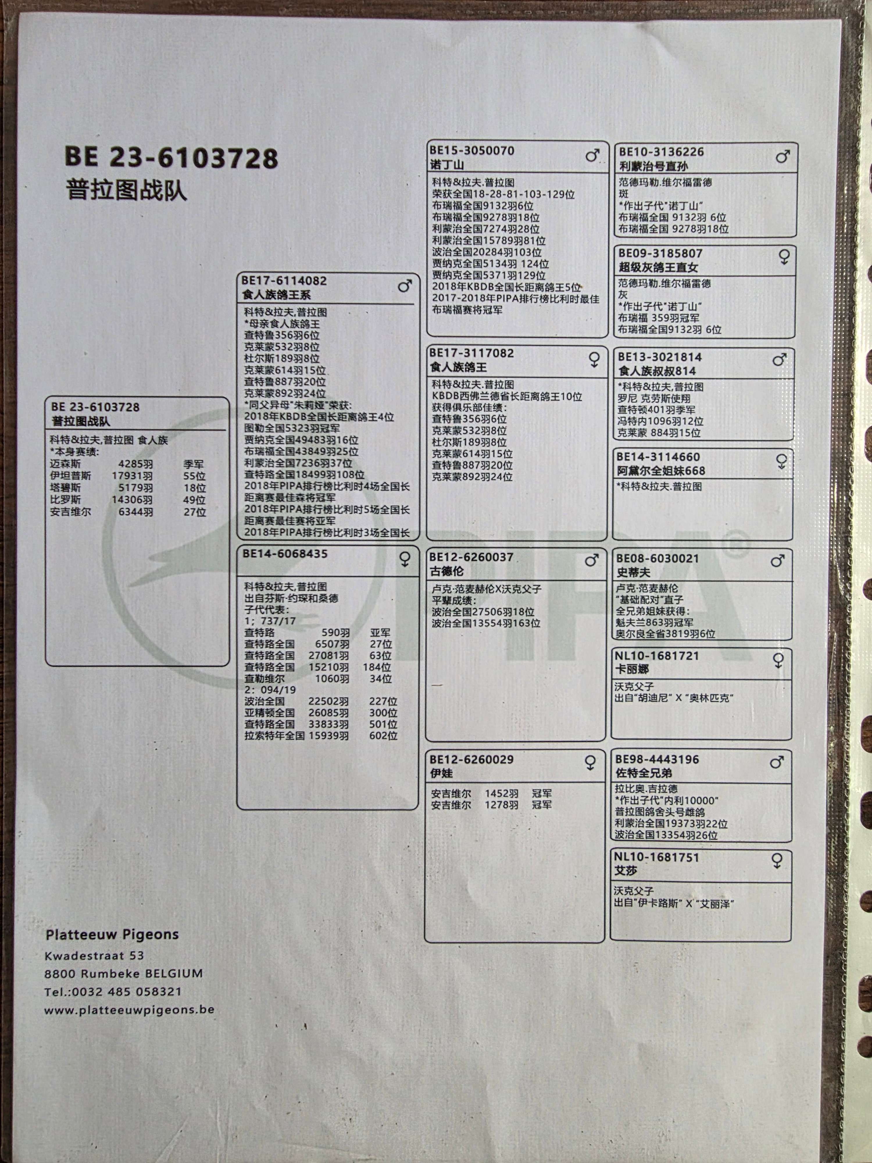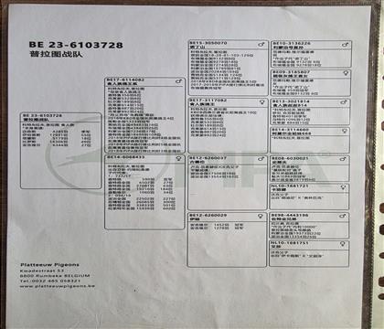 1646273 PIPA菁英联合育种 本身荣获1824羽8位 ¥300元 0次