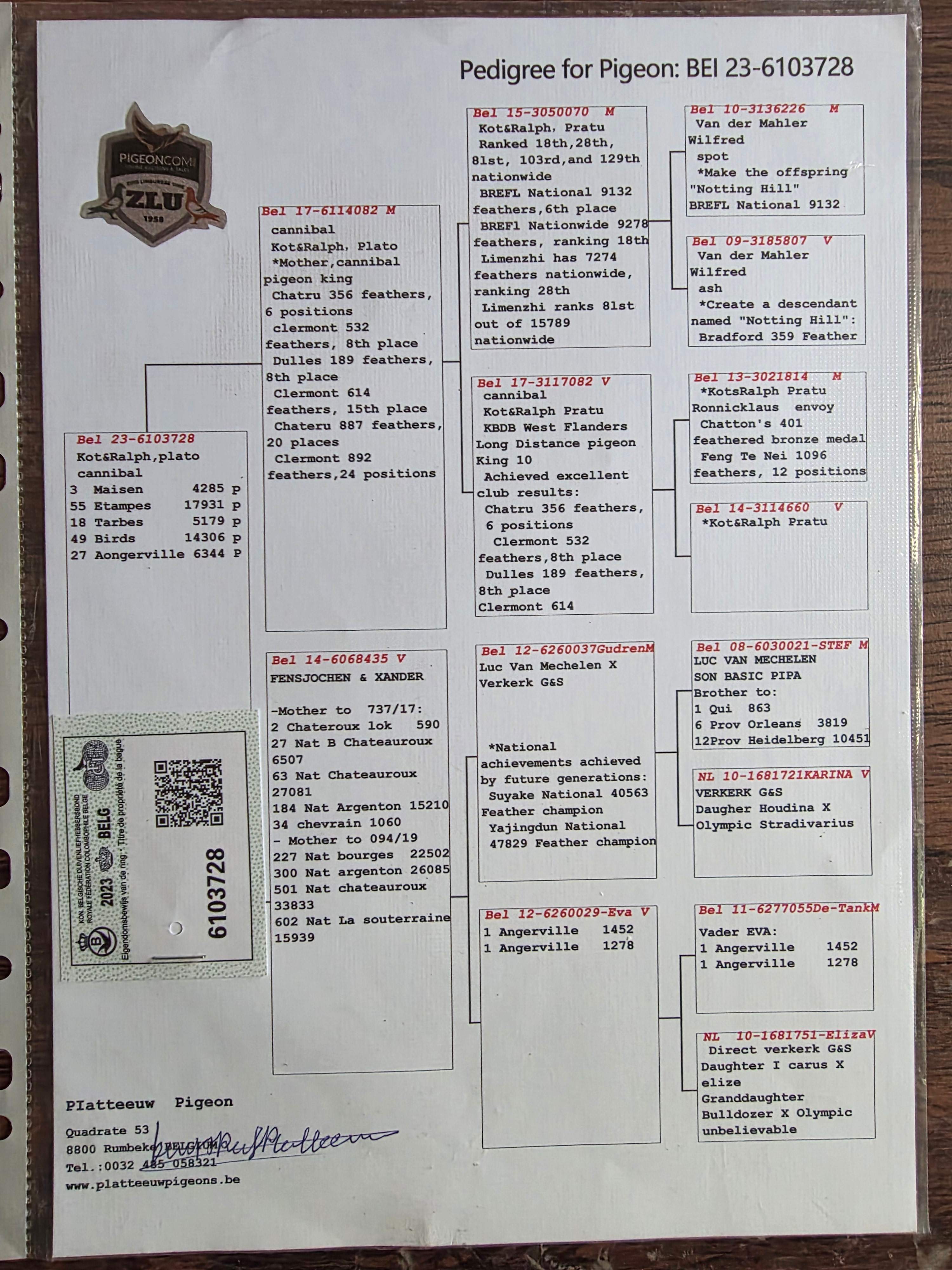 1646295 杰夫·凡温克 本身荣获6002羽12位 ¥300元 0次