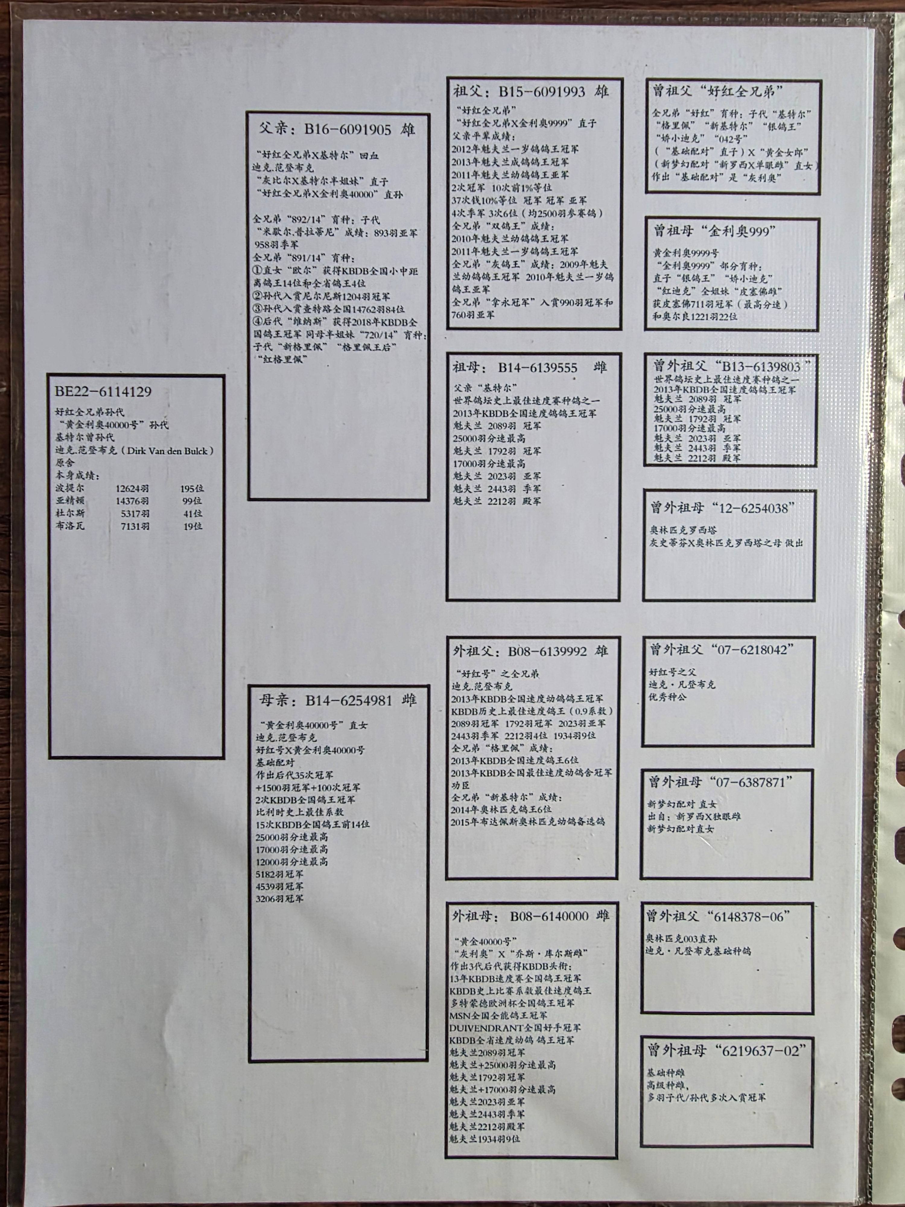 1646280 芬尼卡5000血系-塔碧斯2168羽冠军 ¥300元 1次