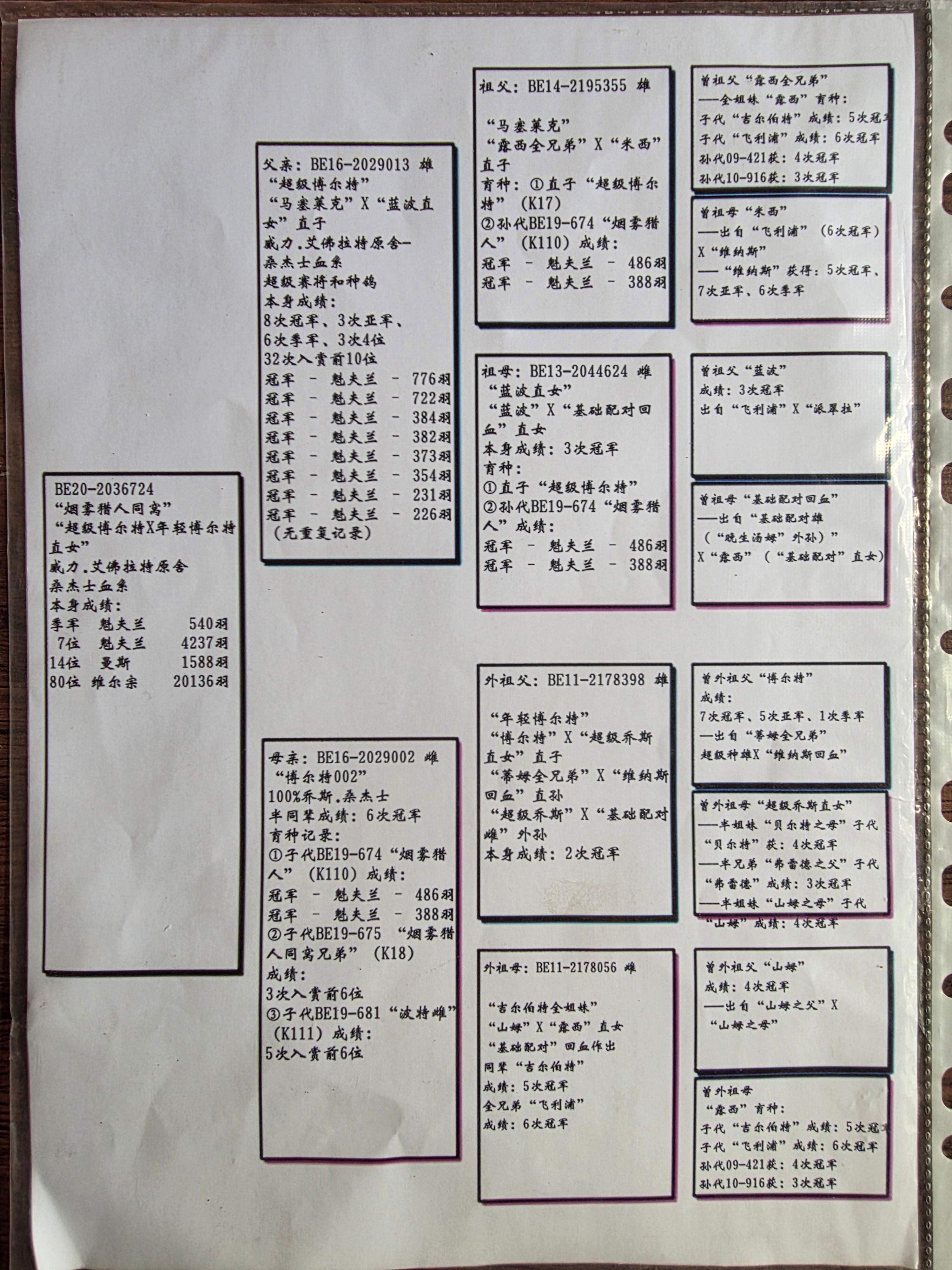 | 1646280 | 芬尼卡5000血系-塔碧斯2168羽冠军 | ¥300元 | 0次 |