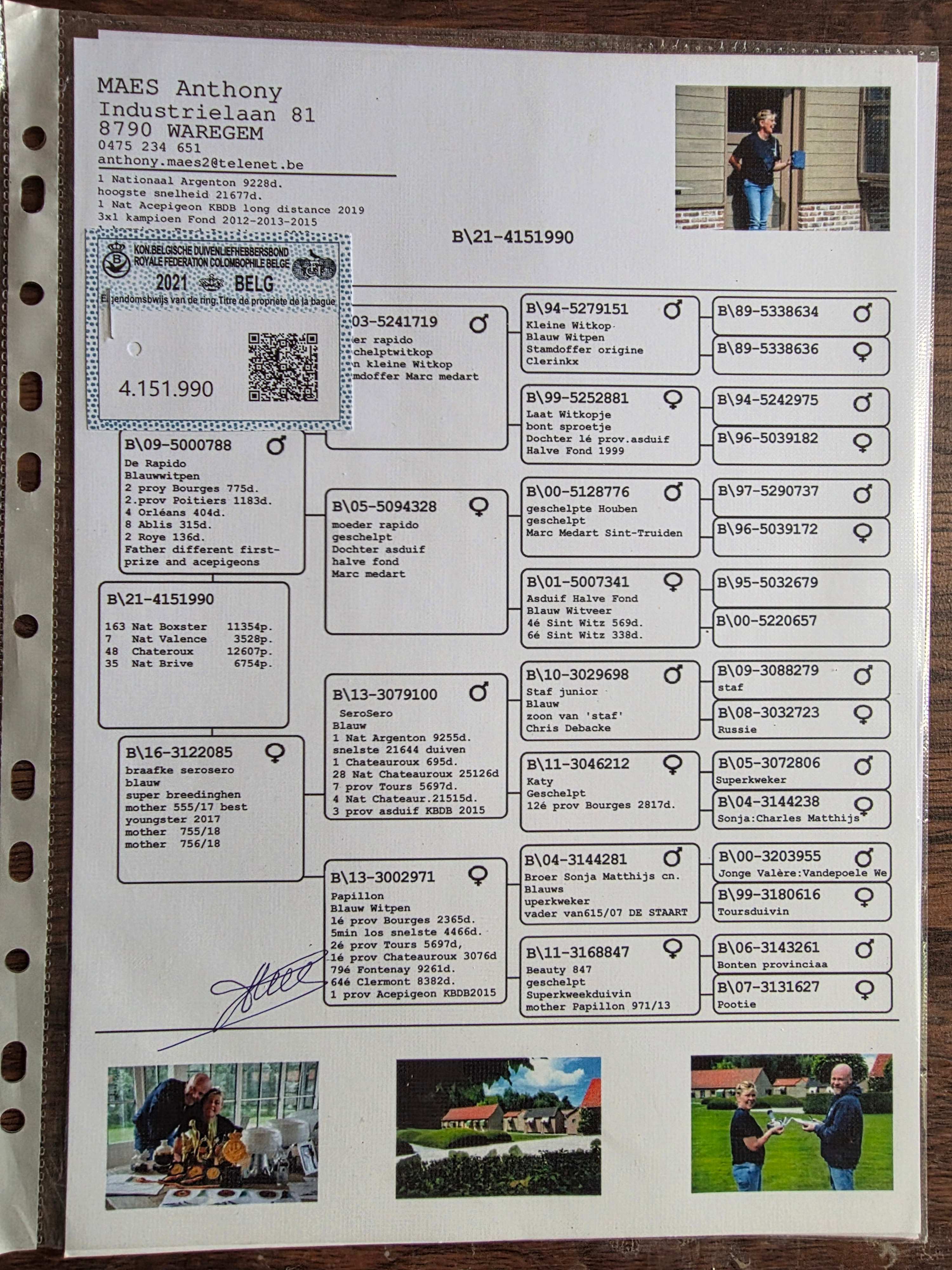 | 1646321 | 葛斯顿.范德瓦尔原舍 本身荣获7291羽冠军 | ¥300元 | 1次 |