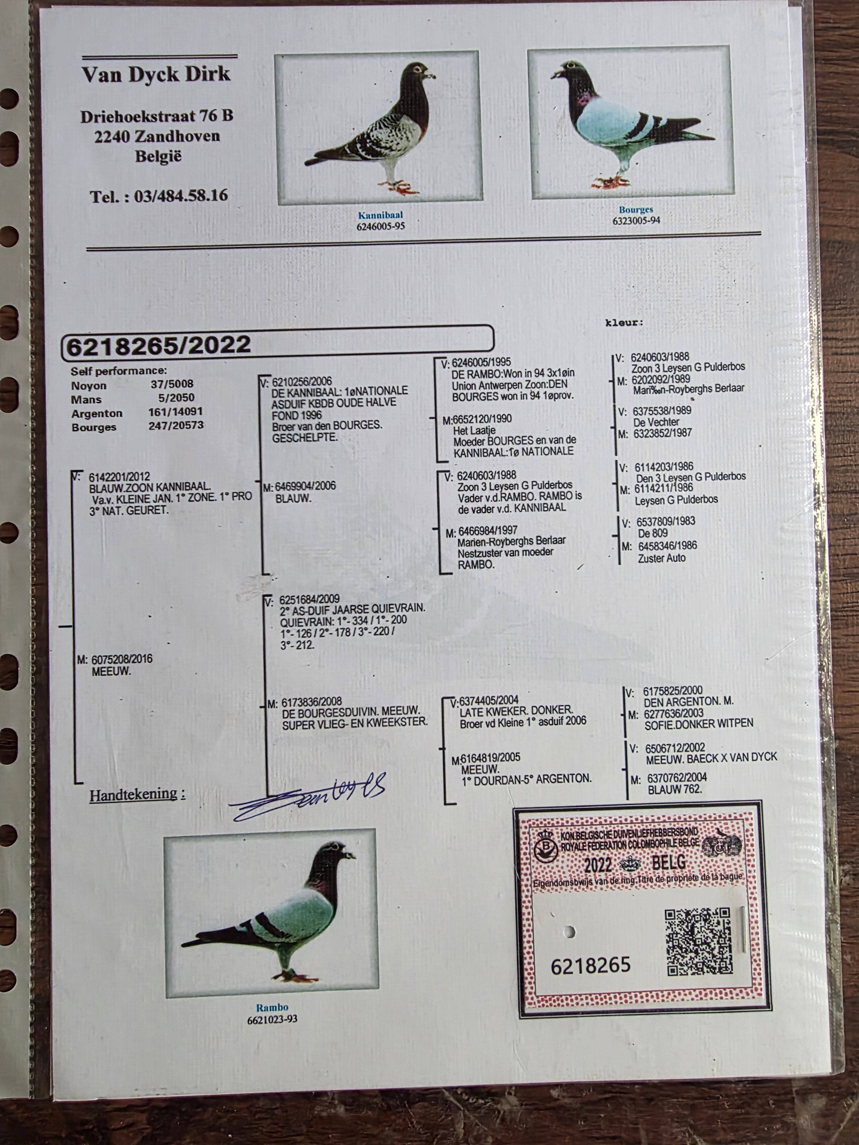 | 1646321 | 葛斯顿.范德瓦尔原舍 本身荣获7291羽冠军 | ¥300元 | 1次 |