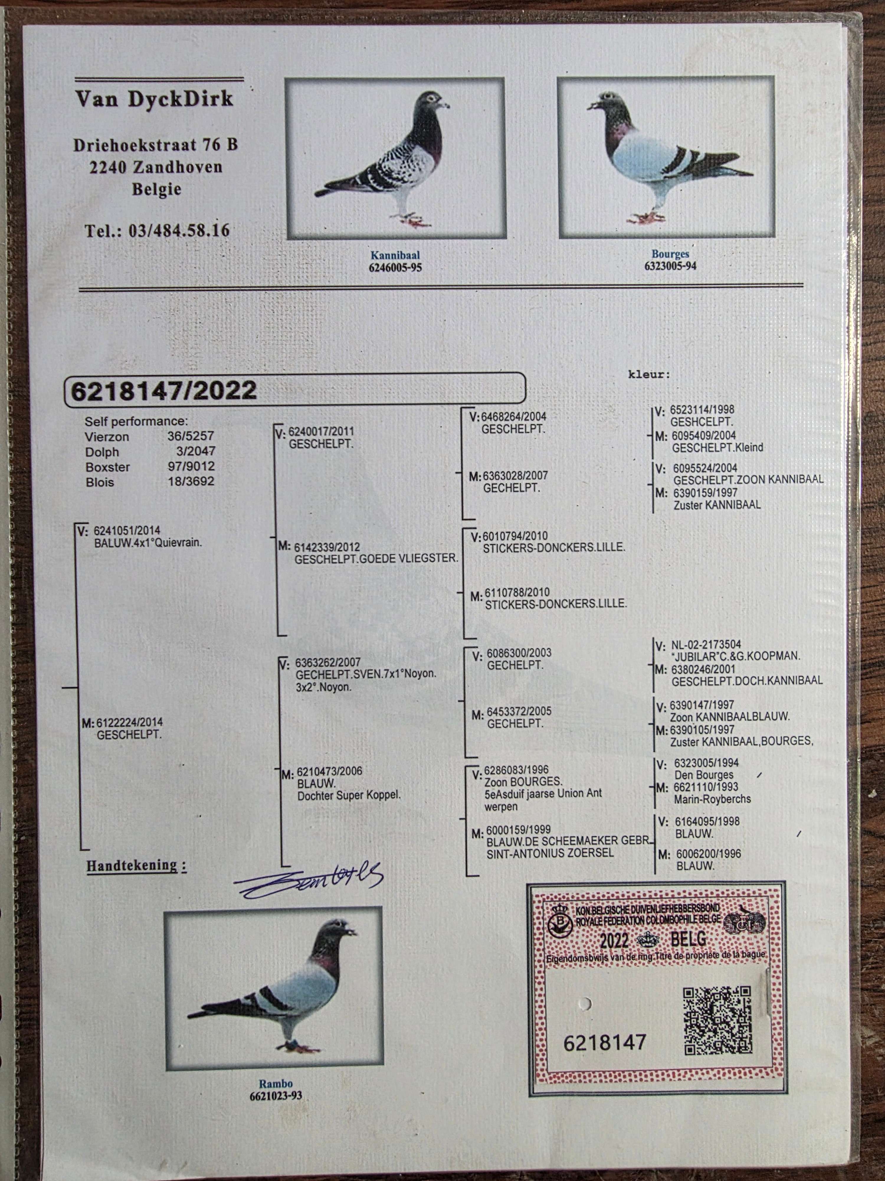 | 1646321 | 葛斯顿.范德瓦尔原舍 本身荣获7291羽冠军 | ¥300元 | 1次 |