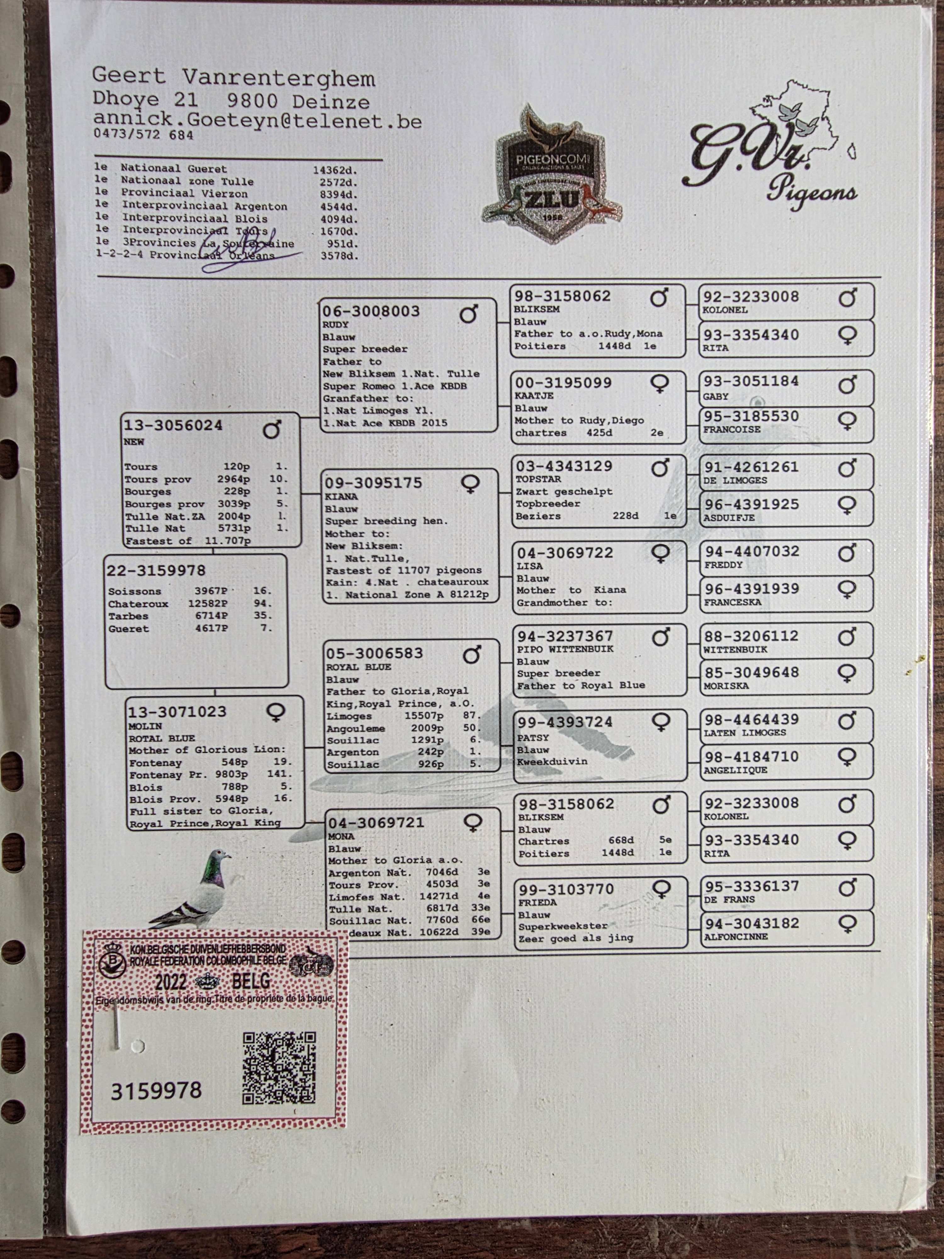 | 1646321 | 葛斯顿.范德瓦尔原舍 本身荣获7291羽冠军 | ¥300元 | 0次 |