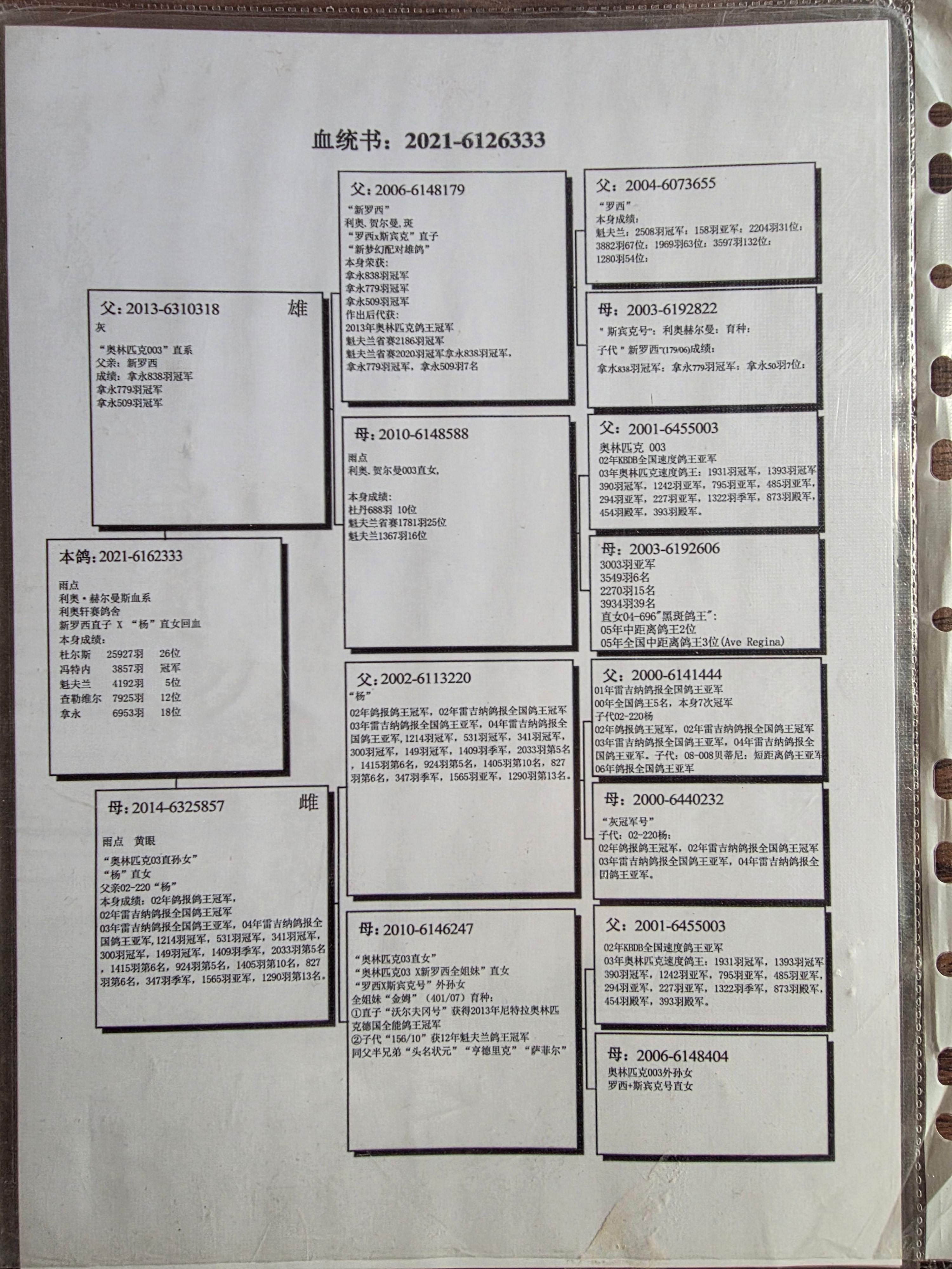 | 1646338 | 新金姆配新金姆之父 本身荣获2913羽冠军 | ¥300元 | 0次 |