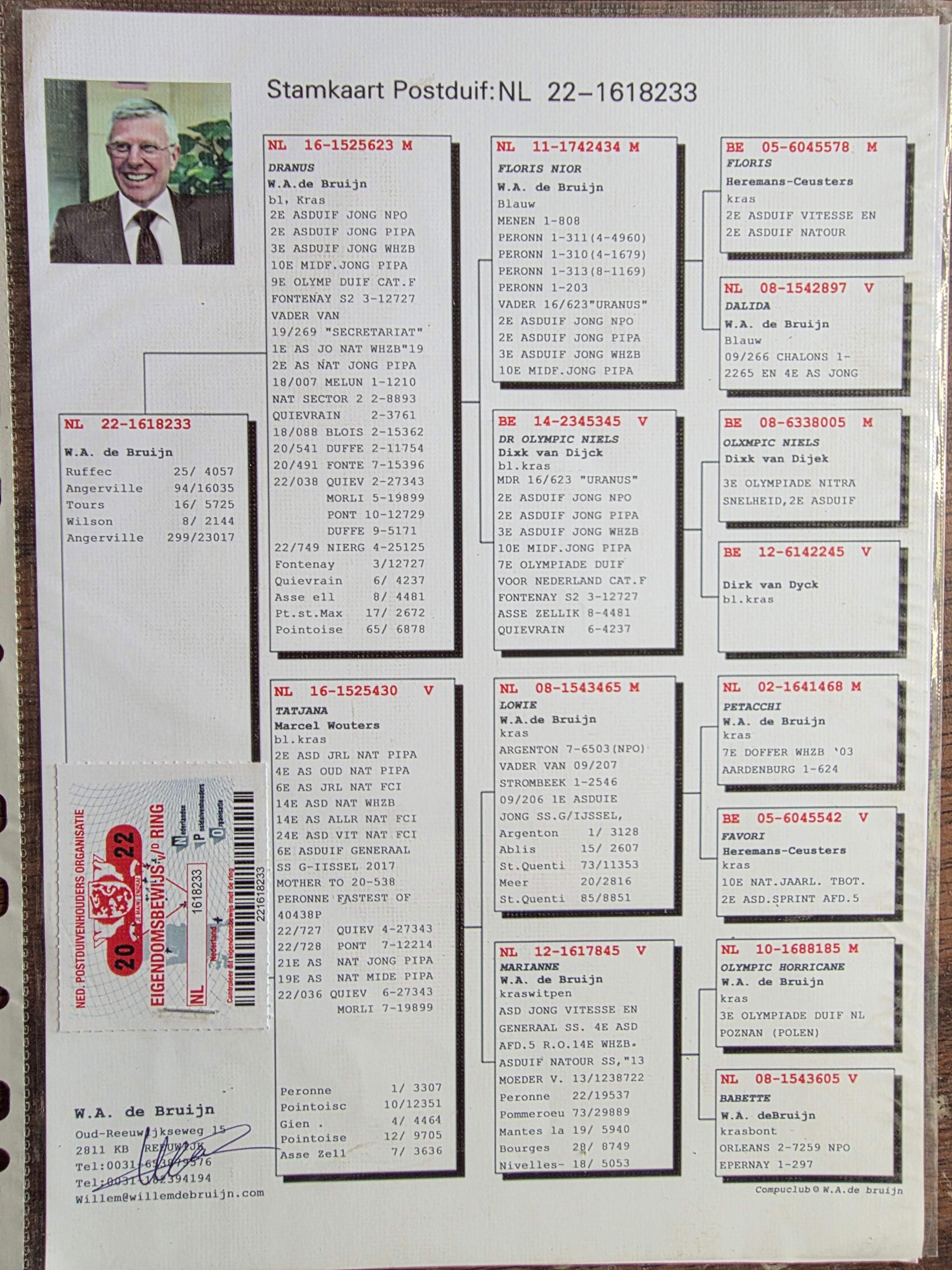 | 1646321 | 葛斯顿.范德瓦尔原舍 本身荣获7291羽冠军 | ¥300元 | 1次 |