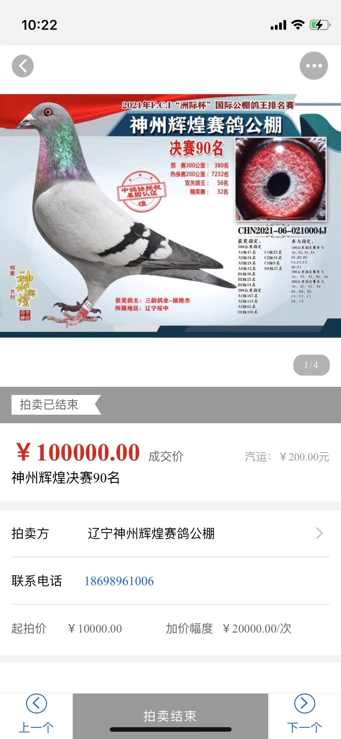 此鸽10万元拍回