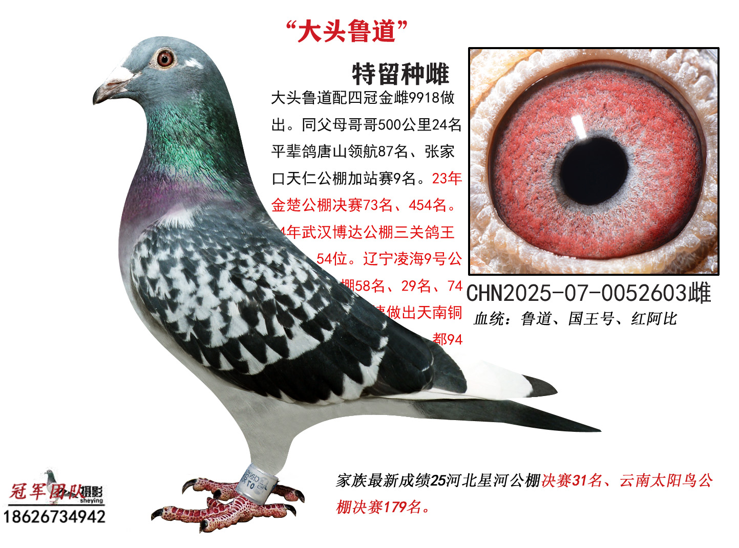 ***支援支援北京鸽友张先生的国王号X红阿比X胡本喜获2025年河北星河公棚决赛31位、鲁道喜获25年河北天仁公棚加站赛9名的好成绩。