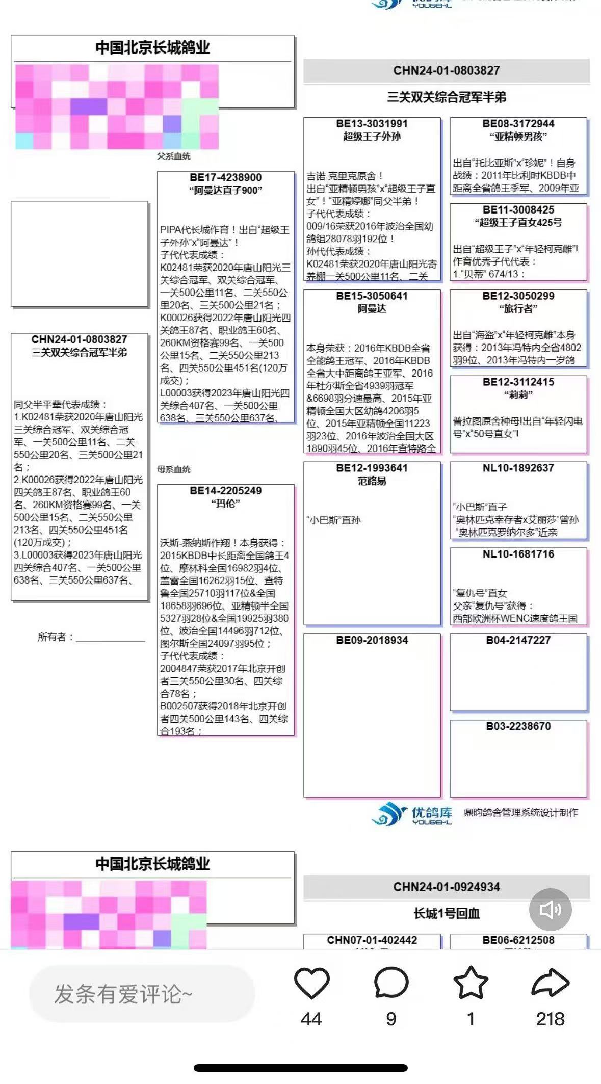 | 1646702 | 开尔鸽业、爱克近亲直孙 | ¥200元 | 1次 |