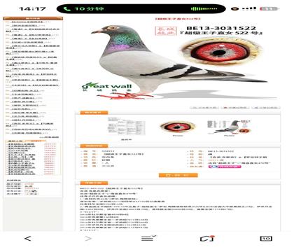 - 当前查看拍卖鸽:吉诺大名鸽522号、4万羽冠军母亲