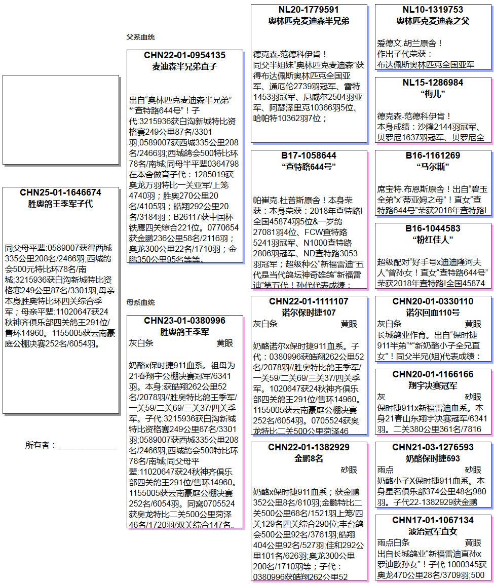 | 1646598 | 7.四关鸽王12名子代.1646670 | ¥200元 | 1次 |