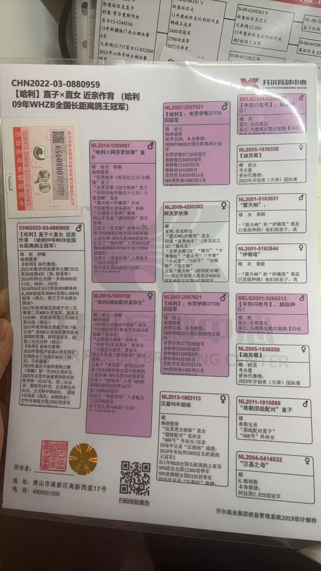 | 1646702 | 开尔鸽业、爱克近亲直孙 | ¥200元 | 1次 |
