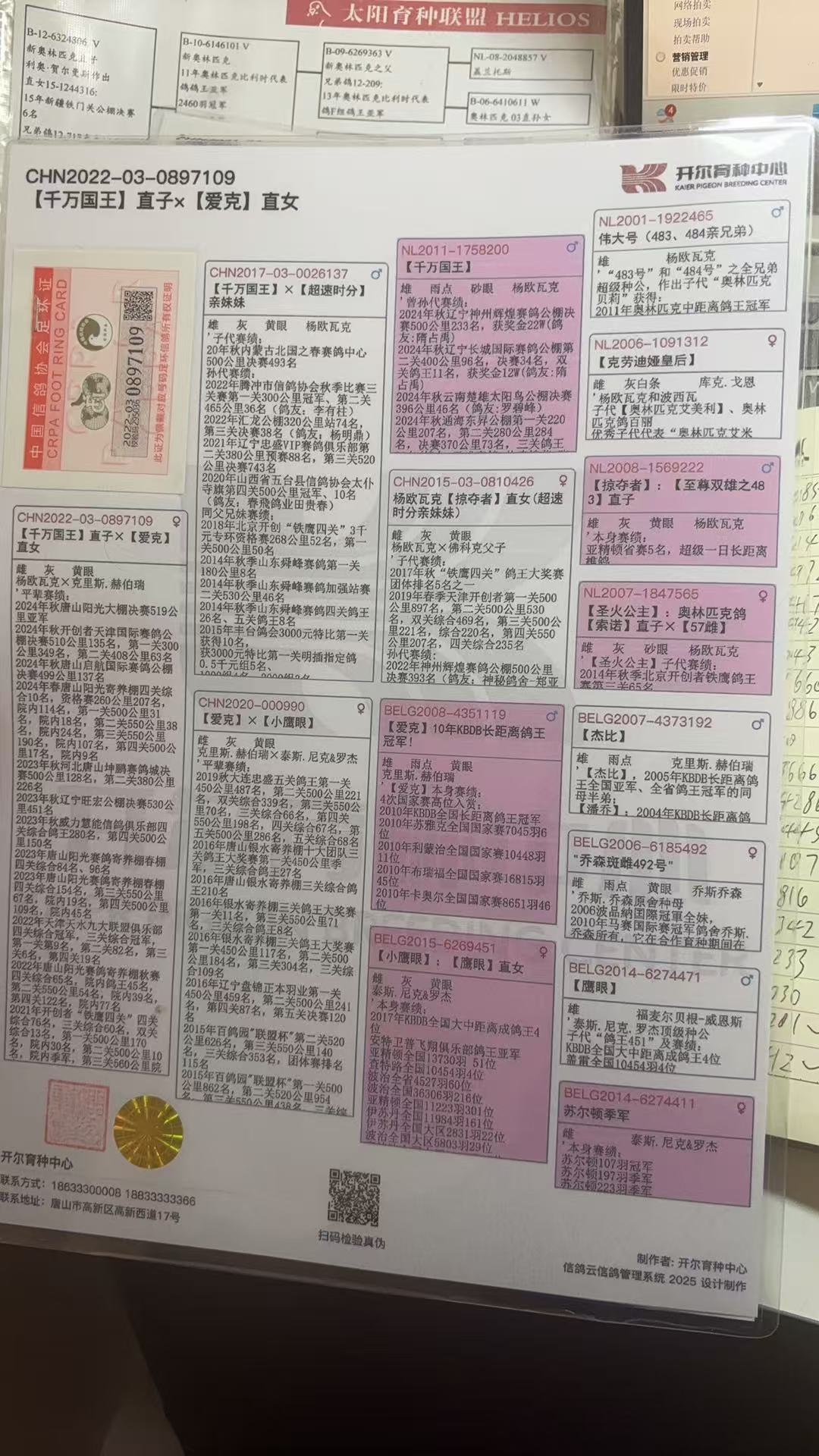 | 1646702 | 开尔鸽业、爱克近亲直孙 | ¥200元 | 1次 |