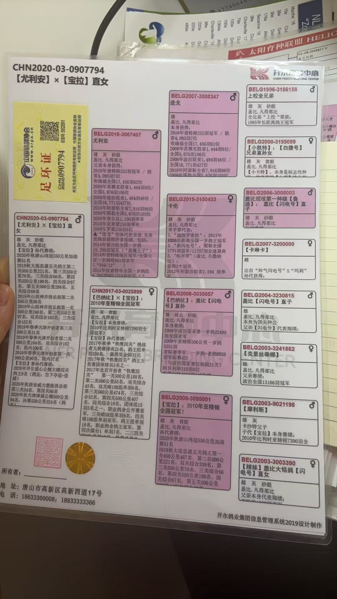 | 1646702 | 开尔鸽业、爱克近亲直孙 | ¥1000元 | 3次 |